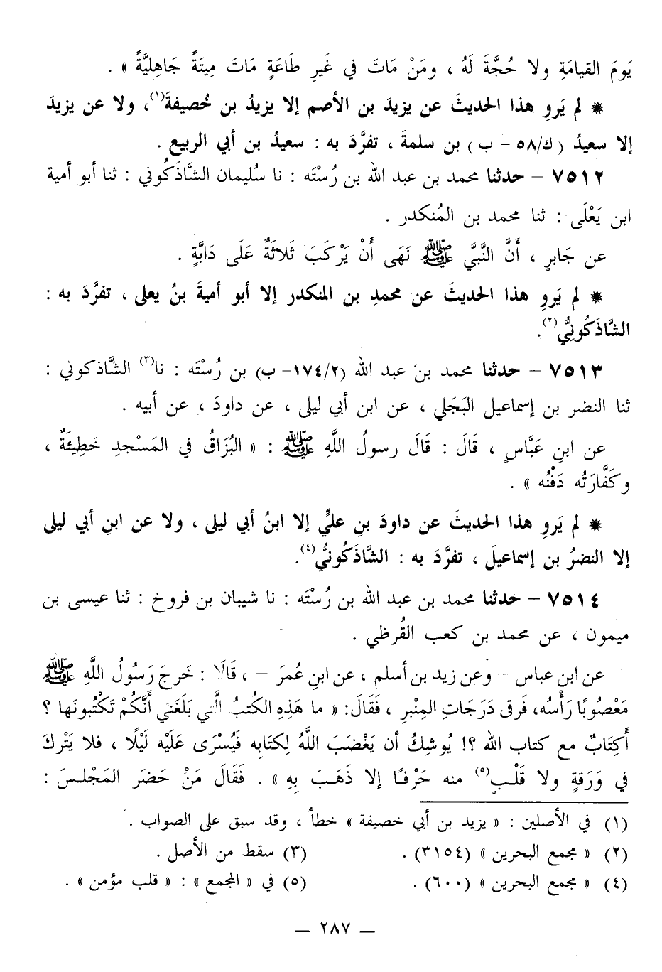 7512 - حَدَّثَنَا مُحَمَّدُ بْنُ عَبْدِ اللَّهِ بْنِ رُسْتَهْ، نَا سُلَيْمَانُ الشَّاذَكُونِيُّ، ثَنَا أَبُو أُمَيَّةَ بْنُ يَعْلَى، ثَنَا مُحَمَّدُ بْنُ الْمُنْكَدِرِ، عَنْ جَابِرٍ «أَنَّ النَّبِيَّ صَلَّى اللهُ عَلَيْهِ وَسَلَّمَ §نَهَى أَنْ يُرْكَبَ ثَلَاثَةٌ عَلَى دَابَّةٍ»