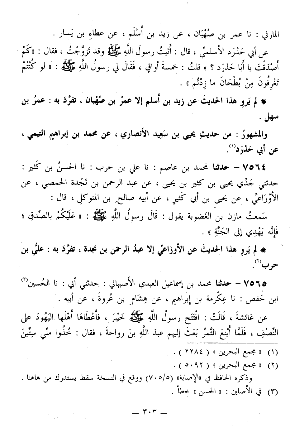 7564 - حَدَّثَنَا مُحَمَّدُ بْنُ عَاصِمٍ، نَا عَلِيُّ بْنُ حَرْبٍ، نَا الْحَسَنُ بْنُ كَثِيرٍ، حَدَّثَنِي جَدِّي يَحْيَى بْنُ كَثِيرِ بْنِ يَحْيَى، عَنْ عَبْدِ الرَّحْمَنِ بْنِ نَجْدَةَ الْحِمْصِيِّ، عَنِ الْأَوْزَاعِيِّ، عَنْ يَحْيَى بْنِ أَبِي كَثِيرٍ، عَنْ أَبِيهِ صَالِحِ بْنِ الْمُتَوَكِّلِ قَالَ: سَمِعْتُ مَازِنَ بْنَ الْغَضُوبَةِ، يَقُولُ: قَالَ رَسُولُ اللَّهِ صَلَّى اللهُ عَلَيْهِ وَسَلَّمَ: «§عَلَيْكُمْ بِالصِّدْقِ، فَإِنَّهُ يَهْدِي إِلَى الْجَنَّةِ»