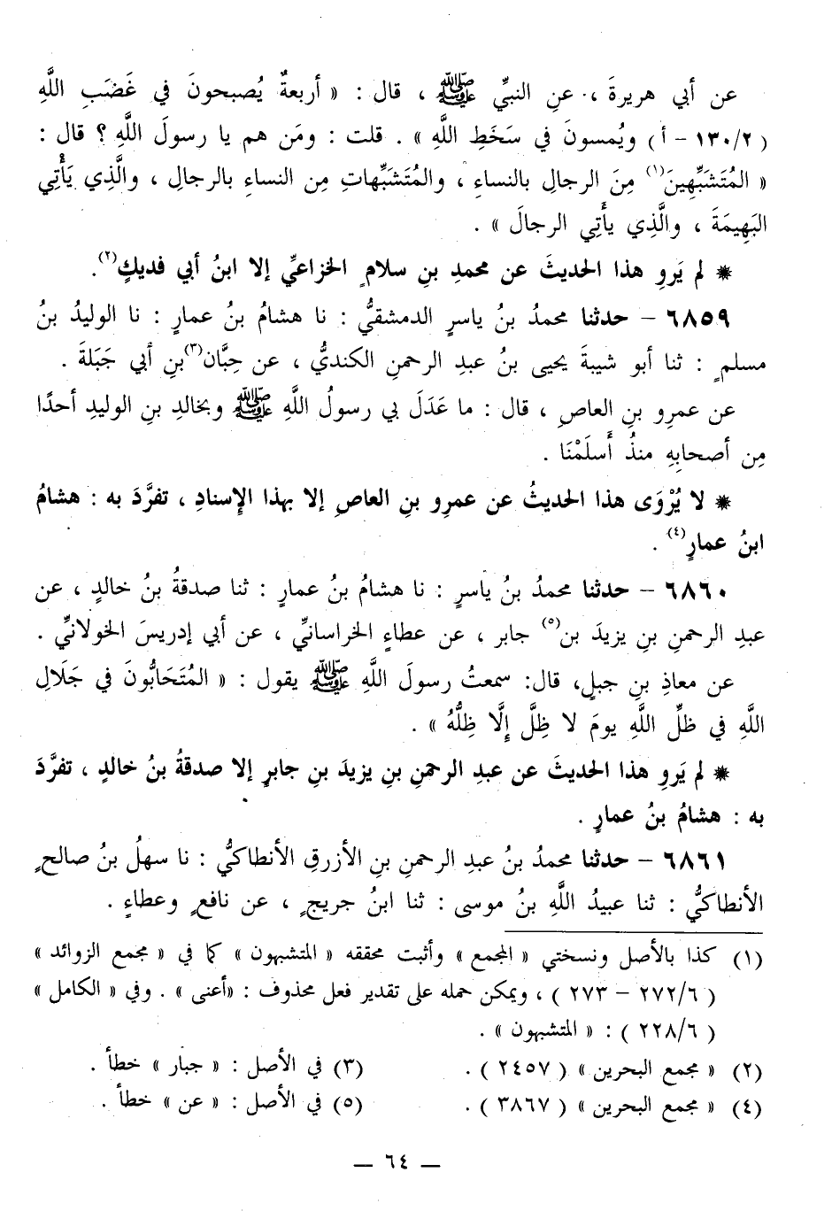 6861 - حَدَّثَنَا مُحَمَّدُ بْنُ عَبْدِ الرَّحْمَنِ بْنِ الْأَزْرَقِ الْأَنْطَاكِيُّ، نَا سَهْلُ بْنُ صَالِحٍ الْأَنْطَاكِيُّ، ثَنَا عُبَيْدُ اللَّهِ بْنُ مُوسَى، ثَنَا ابْنُ جُرَيْجٍ، عَنْ نَافِعٍ، وَعَطَاءٍ، -[65]- عَنِ ابْنِ عُمَرَ: «أَنَّ النَّبِيَّ صَلَّى اللهُ عَلَيْهِ وَسَلَّمَ كَانَ §يُصَلِّي فِي نَعْلَيْهِ»