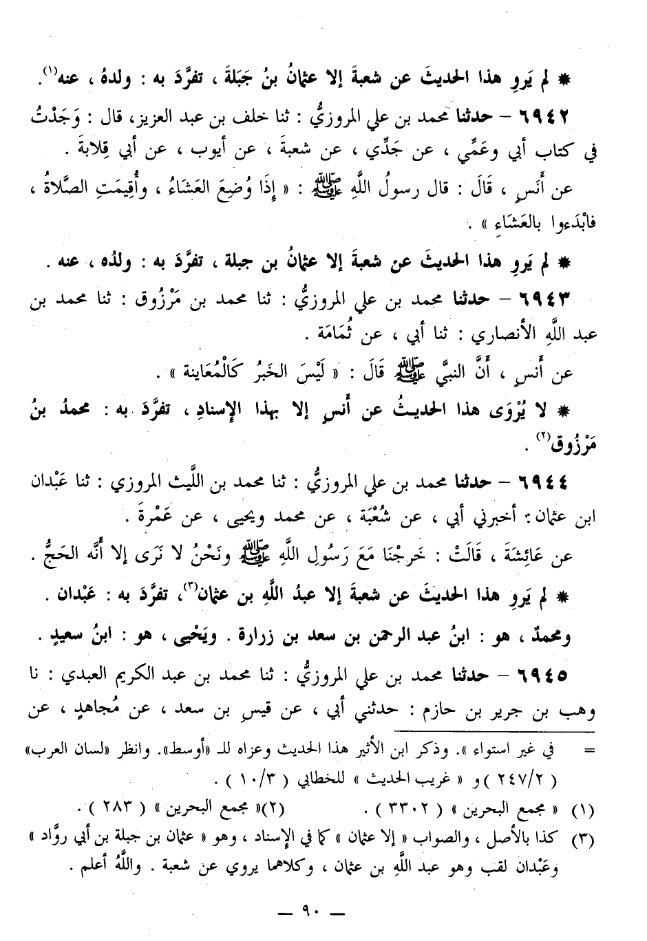لَمْ يَرْوِ هَذَا الْحَدِيثَ عَنْ شُعْبَةَ إِلَّا عَبْدُ اللَّهِ بْنُ عُثْمَانَ، تَفَرَّدَ بِهِ: عَبْدَانُ، وَمُحَمَّدٌ هُوَ ابْنُ عَبْدِ الرَّحْمَنِ بْنِ سَعْدِ بْنِ زُرَارَةَ، وَيَحْيَى هُوَ ابْنُ سَعِيدٍ "