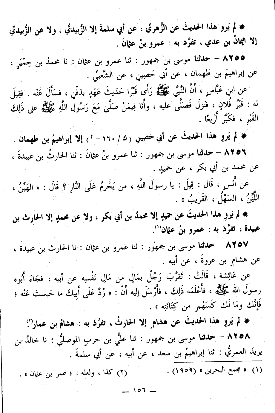 لَمْ يَرْوِ هَذَا الْحَدِيثَ عَنْ حُمَيْدٍ إِلَّا مُحَمَّدُ بْنُ أَبِي بَكْرٍ، وَلَا عَنْ مُحَمَّدٍ إِلَّا الْحَارِثُ بْنُ عُبَيْدَةَ، تَفَرَّدَ بِهِ: عَمْرُو بْنُ عُثْمَانَ "