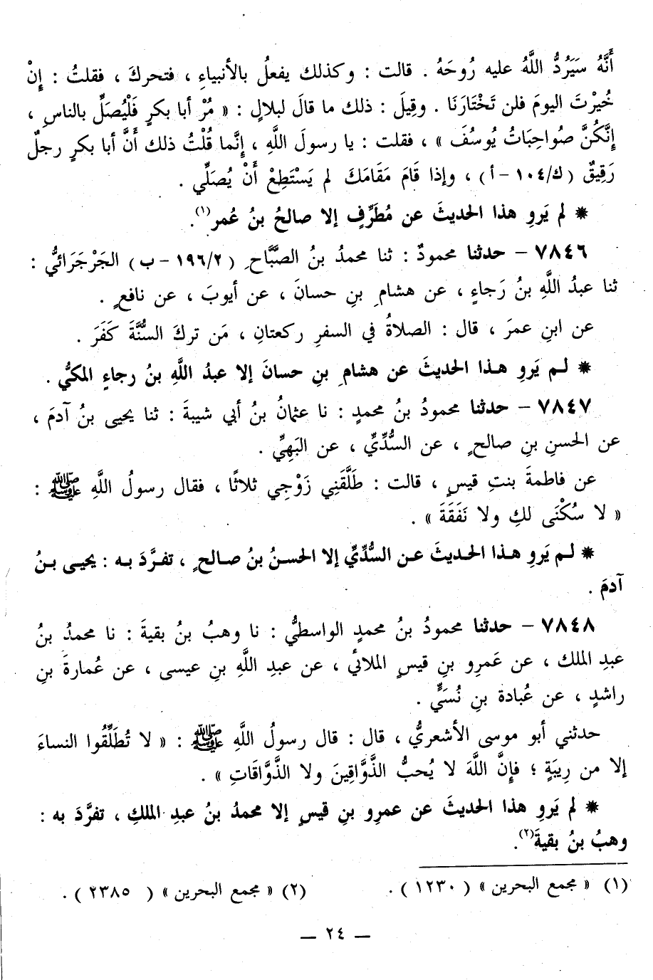 7846 - حَدَّثَنَا مَحْمُودٌ، ثنا مُحَمَّدُ بْنُ الصَّبَّاحِ الْجَرْجَرَائِيُّ، ثنا عَبْدُ اللَّهِ بْنُ رَجَاءٍ، عَنْ هِشَامِ بْنِ حَسَّانَ، عَنْ أَيُّوبَ، عَنْ نَافِعٍ، عَنِ ابْنِ عُمَرَ قَالَ: «§الصَّلَاةُ فِي السَّفَرِ رَكْعَتَانِ، مَنْ تَرَكَ السُّنَّةَ كَفَرَ»