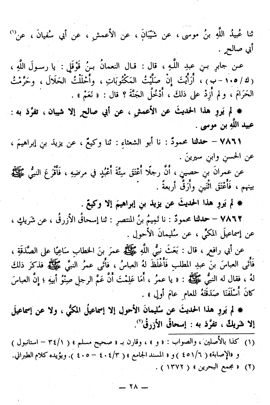 7862 - حَدَّثَنَا مَحْمُودٌ، نا تَمِيمُ بْنُ الْمُنْتَصِرِ، ثَنَا إِسْحَاقُ الْأَزْرَقُ، عَنْ شَرِيكٍ، عَنْ إِسْمَاعِيلَ الْمَكِّيِّ، عَنْ سُلَيْمَانَ الْأَحْوَلِ، عَنْ أَبِي رَافِعٍ قَالَ: بَعَثَ نَبِيُّ اللَّهِ صَلَّى اللهُ عَلَيْهِ وَسَلَّمَ عُمَرَ بْنَ الْخَطَّابِ سَاعِيًا عَلَى الصَّدَقَةِ، فَأَتَى الْعَبَّاسَ بْنَ عَبْدِ الْمُطَّلِبِ، فَأَغْلَظَ لَهُ الْعَبَّاسُ، فَأَتَى عُمَرُ النَّبِيَّ صَلَّى اللهُ عَلَيْهِ وَسَلَّمَ فَذَكَرَ ذَلِكَ لَهُ، فَقَالَ لَهُ النَّبِيُّ صَلَّى اللهُ عَلَيْهِ وَسَلَّمَ: «يَا عُمَرُ، §أَمَا عَلِمْتَ أَنَّ عَمَّ الرَّجُلِ صِنْوُ أَبِيهِ، إِنَّ الْعَبَّاسَ كَانَ أَسْلَفْنَا صَدَقَتَهُ لِلْعَامِ عَامَ أَوَّلٍ»