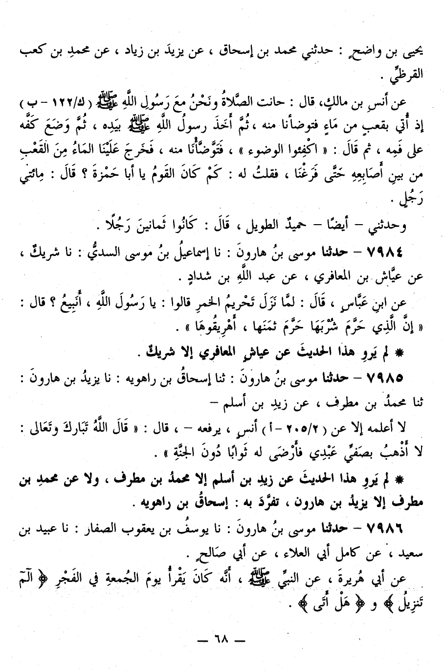 لَمْ يَرْوِ هَذَا الْحَدِيثَ عَنْ زَيْدِ بْنِ أَسْلَمَ إِلَّا مُحَمَّدُ بْنُ مُطَرِّفٍ، وَلَا عَنْ مُحَمَّدِ بْنِ مُطَرِّفٍ إِلَّا يَزِيدُ بْنُ هَارُونَ، تَفَرَّدَ بِهِ: إِسْحَاقُ بْنُ رَاهَوَيْهِ "