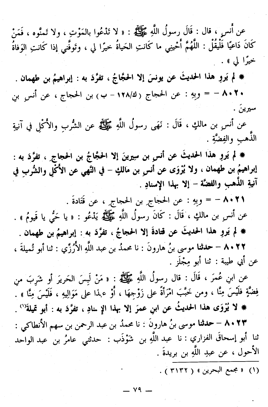 لَمْ يَرْوِ هَذَا الْحَدِيثَ عَنْ أَنَسِ بْنِ سِيرِينَ إِلَّا الْحَجَّاجُ بْنُ الْحَجَّاجِ، تَفَرَّدَ بِهِ: إِبْرَاهِيمُ بْنُ طَهْمَانَ، وَلَا يُرْوَى عَنْ أَنَسِ بْنِ مَالِكٍ فِي النَّهْيِ عَنِ الْأَكْلِ وَالشُّرْبِ فِي آنِيَةِ الذَّهَبِ وَالْفِضَّةِ إِلَّا بِهَذَا الْإِسْنَادِ "