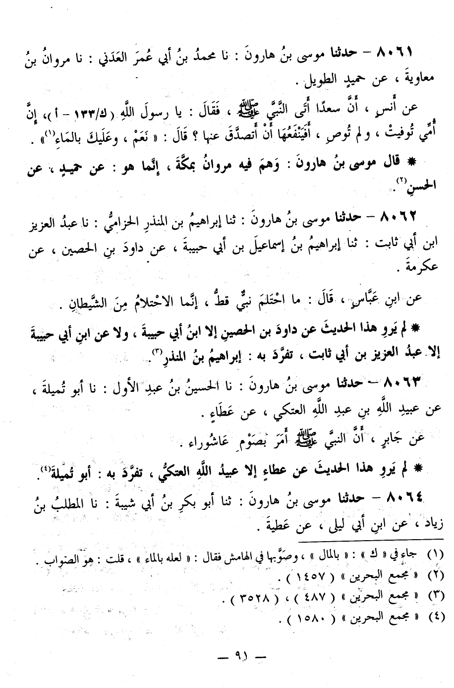 8063 - حَدَّثَنَا مُوسَى بْنُ هَارُونَ، نا الْحُسَيْنُ بْنُ عَبْدِ الْأَوَّلِ، نا أَبُو تُمَيْلَةَ، عَنْ عُبَيْدِ اللَّهِ بْنِ عَبْدِ اللَّهِ الْعَتَكِيِّ، عَنْ عَطَاءٍ، عَنْ جَابِرٍ، «أَنَّ النَّبِيَّ صَلَّى اللهُ عَلَيْهِ وَسَلَّمَ §أَمَرَ بِصَوْمِ عَاشُورَاءَ»