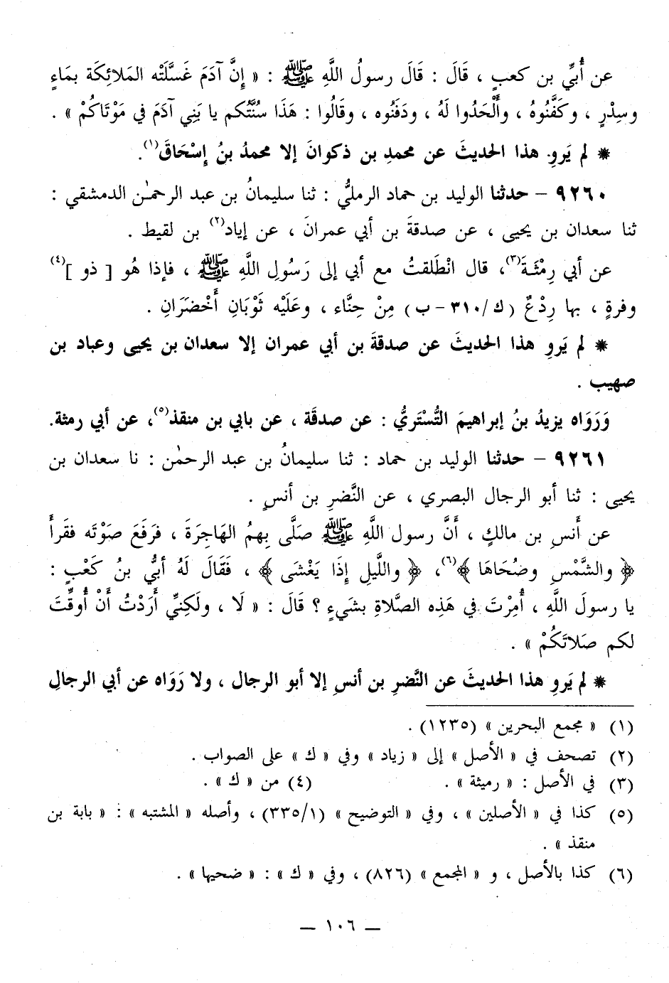 لَمْ يَرْوِ هَذَا الْحَدِيثَ عَنِ النَّضْرِ بْنِ أَنَسٍ إِلَّا أَبُو الرِّجَالِ، وَلَا رَوَاهُ عَنْ أَبِي الرِّجَالِ -[107]- إِلَّا سَعْدَانُ بْنُ يَحْيَى وَسَلَّمُ بْنُ قُتَيْبَةَ