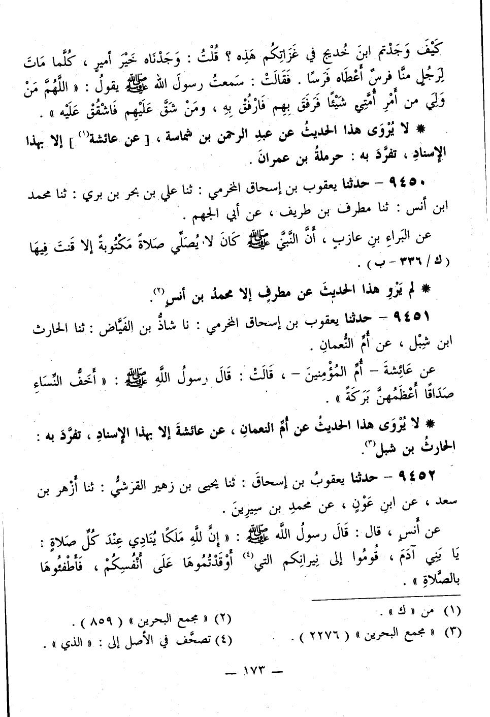 9450 - حَدَّثَنَا يَعْقُوبُ بْنُ إِسْحَاقَ الْمَخْرَمِيُّ، ثَنَا عَلِيُّ بْنُ بَحْرِ بْنِ بَرِّيٍّ، ثَنَا مُحَمَّدُ بْنُ أَنَسٍ، ثَنَا مُطَرِّفُ بْنُ طَرِيفٍ، عَنْ أَبِي الْجَهْمِ، عَنِ الْبَرَاءِ بْنِ عَازِبٍ، «أَنَّ النَّبِيَّ صَلَّى اللهُ عَلَيْهِ وَسَلَّمَ §كَانَ لَا يُصَلِّي صَلَاةً مَكْتُوبَةً إِلَّا قَنَتَ فِيهَا»