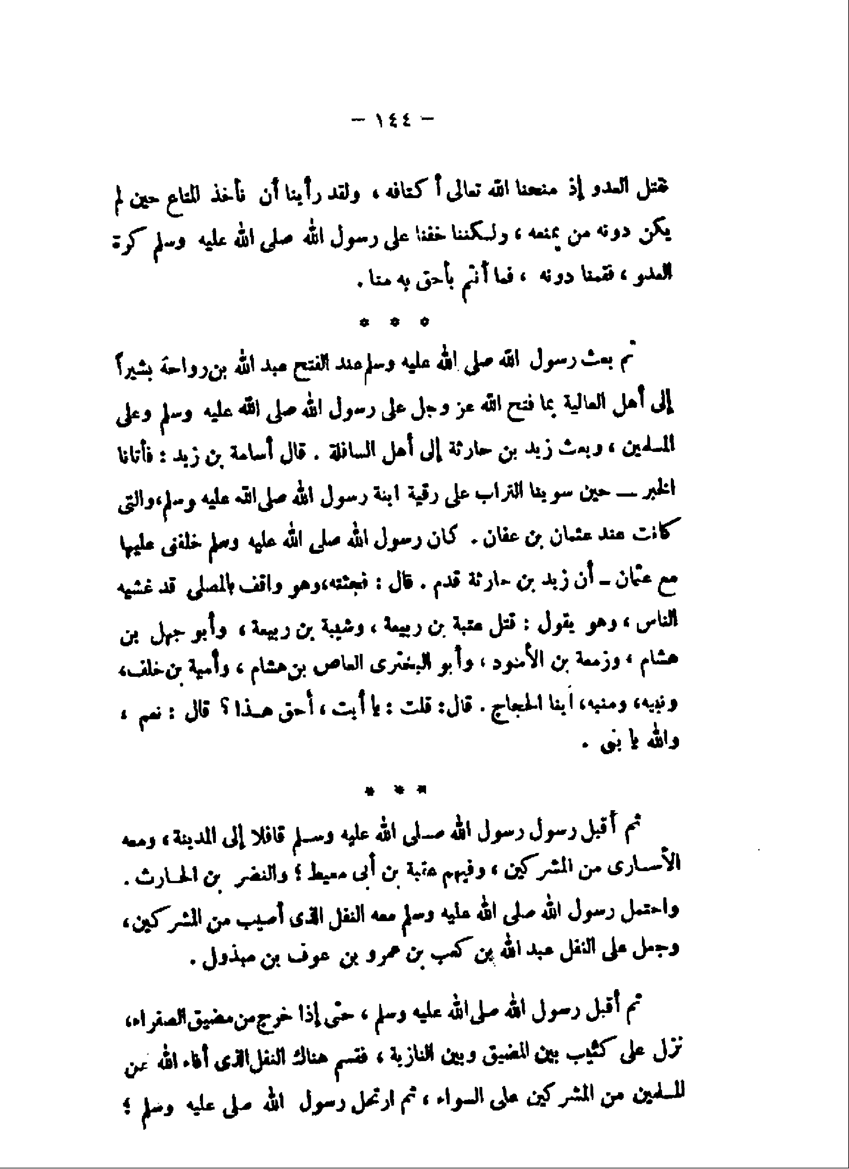 ثم أقبل رسول رسول الله صلى الله عليه وسلم قافلا إلى المدينة، ومعه الأسارى من المشركين، وفيهم عقبة بن أبى معيط، والنضر بن الحارث.