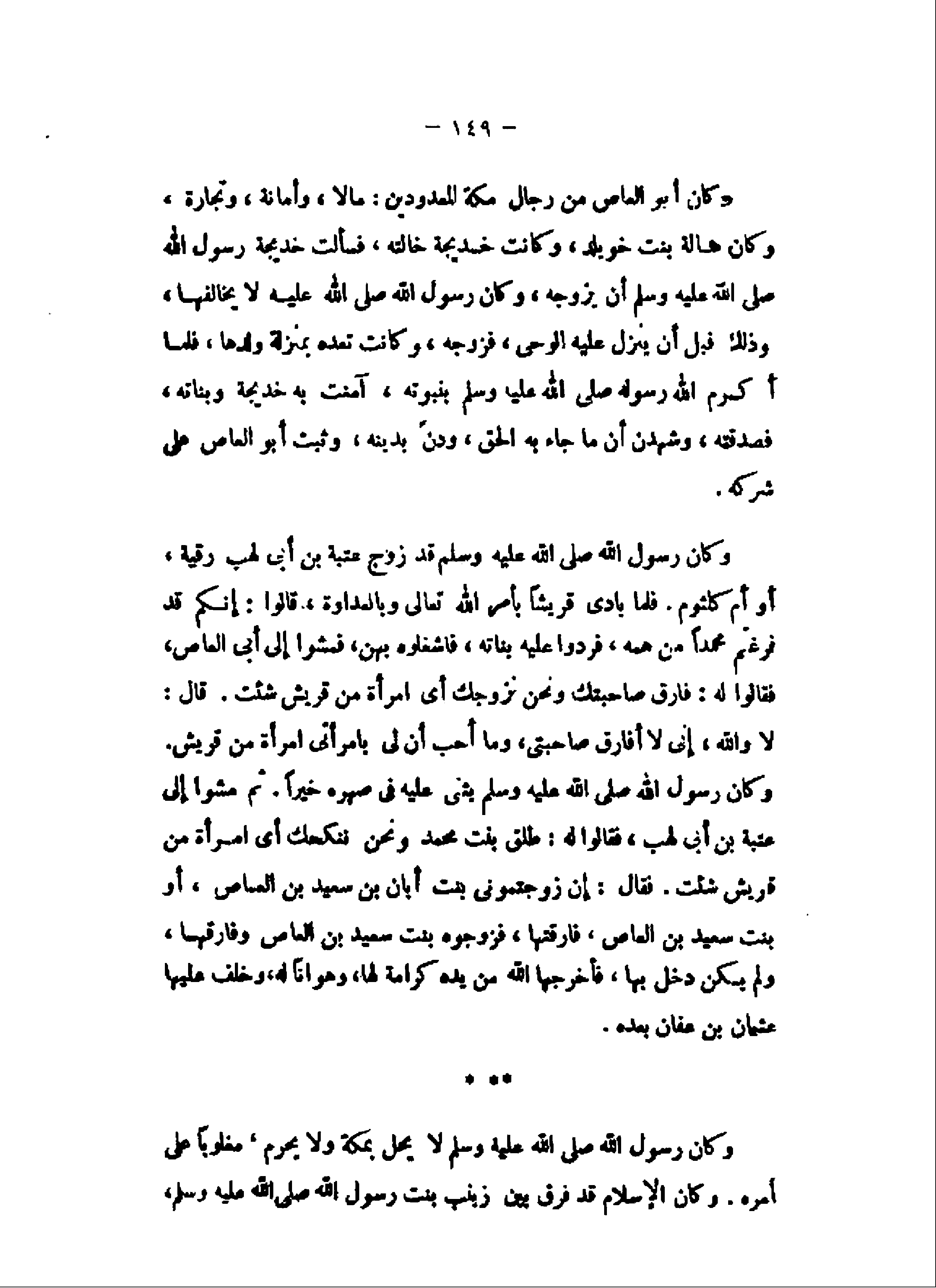 وكان رسول الله صلى الله عليه وسلم يثنى عليه فى صهره خيرا. ثم مشوا إلى عتبة بن أبى لهب، فقالوا له: طلق بنت محمد ونحن ننكحك أى امرأة من قريش شئت. فقال: إن زوجتمونى بنت أبان بن سعيد بن العاص، أو بنت سعيد بن العاص، فارقتها، فزوجوه بنت سعيد بن العاص وفارقها، ولم يكن دخل بها، فأخرجها الله من يده كرامة لها، وهوانا له، وخلف عليها عثمان بن عفان بعده.