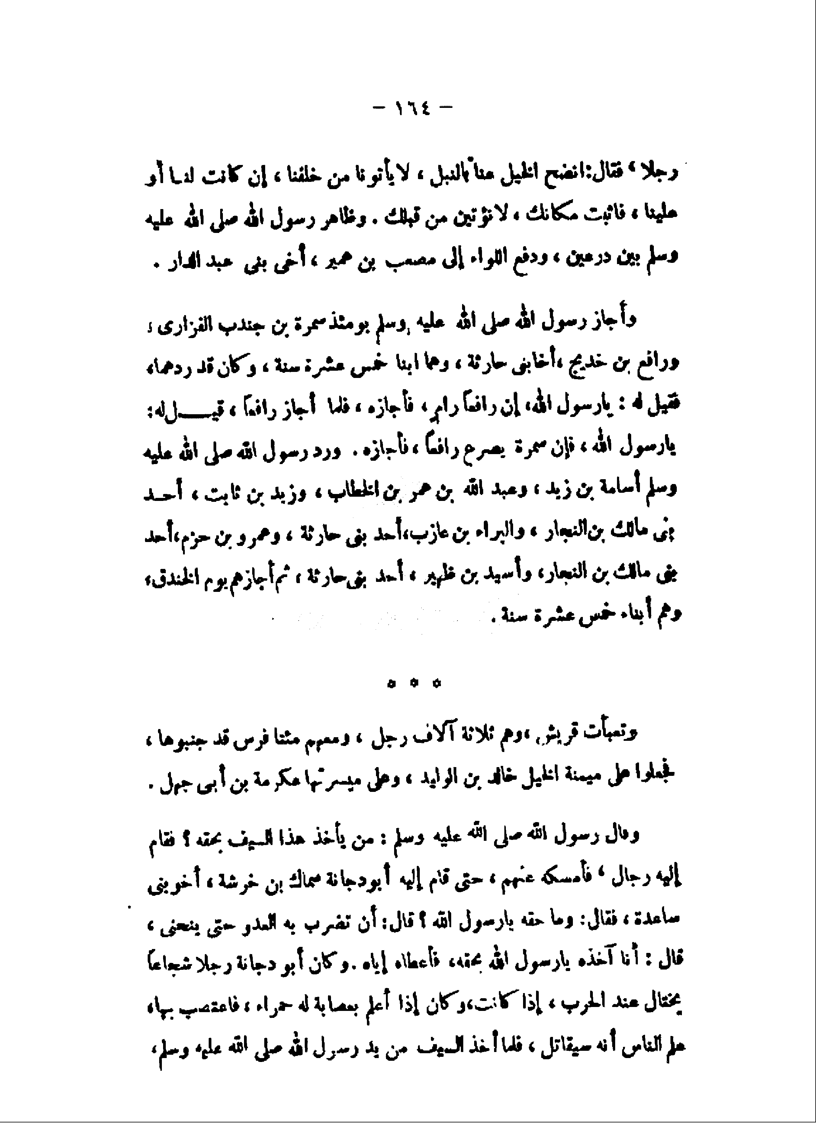يا رسول الله، فإن سمرة يصرع رافعا، فأجازه. ورد رسول الله صلى الله عليه وسلم أسامة بن زيد، وعبد الله بن عمر بن الخطاب، وزيد بن ثابت، أحد بنى مالك بن النجار، والبراء بن عازب، أحد بنى حارثة، وعمرو بن حزم، أحد بنى مالك بن النجار، وأسيد بن ظهير، أحد بنى حارثة، ثم أجازهم يوم الخندق، وهم أبناء خمس عشرة سنة.