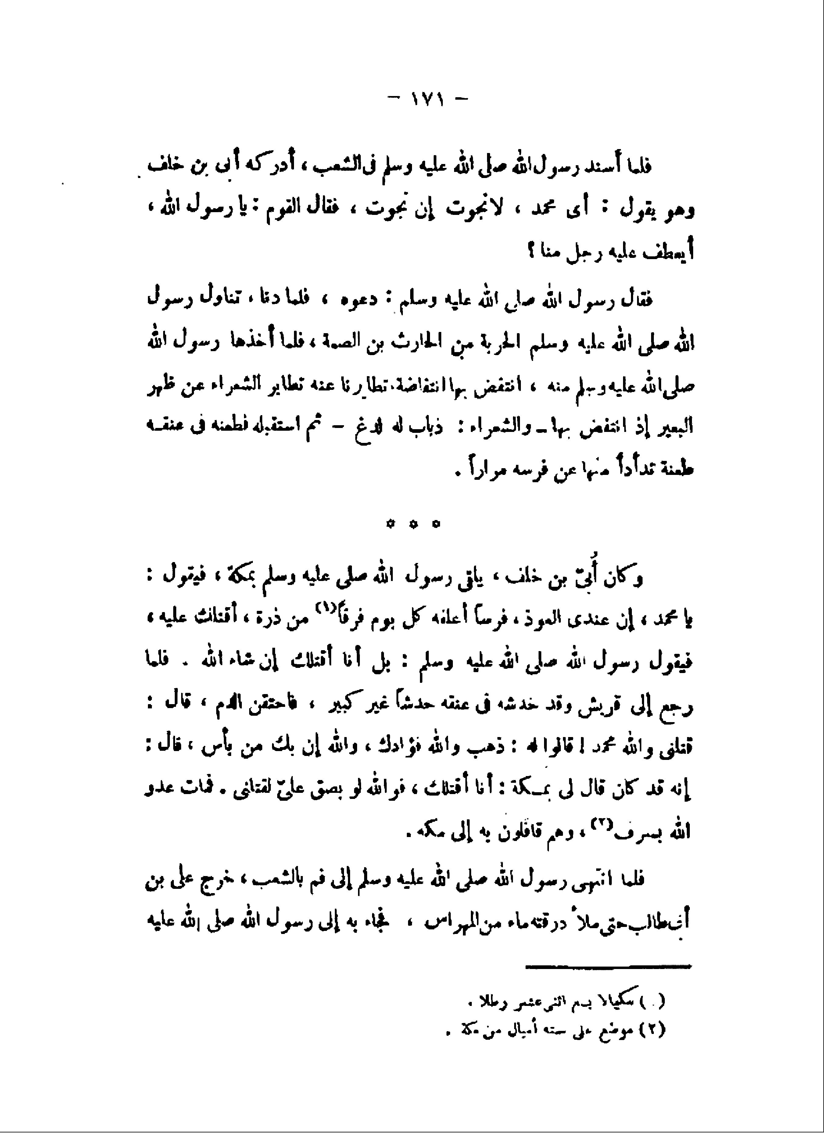 فلما أسند رسول الله صلى الله عليه وسلم فى الشعب، أدركه أبى بن خلف وهو يقول: أى محمد، لا نجوت إن نجوت، فقال القوم: يا رسول الله، أيعطف عليه رجل منا؟