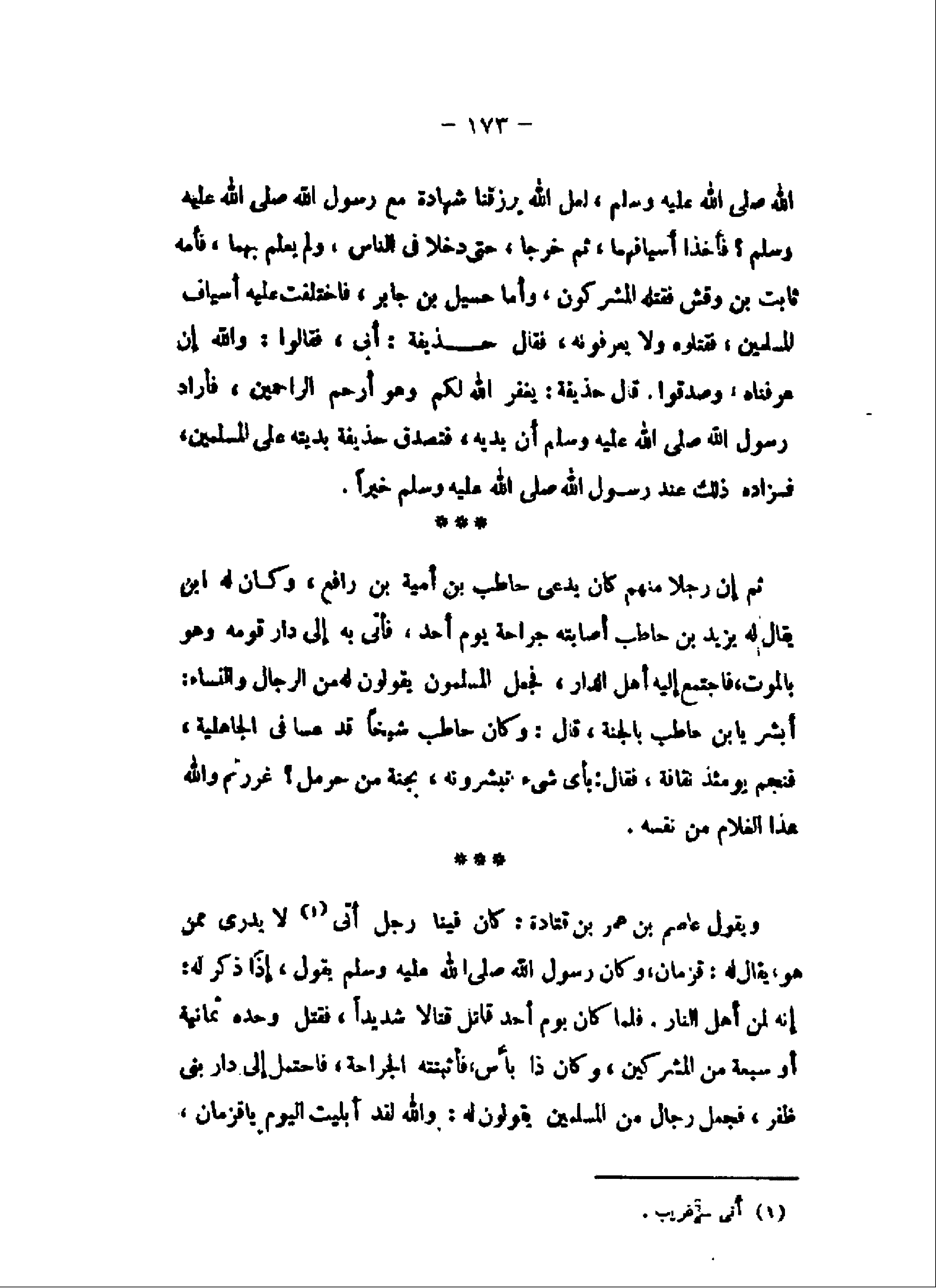 أبشر يابن حاطب بالجنة، قال: وكان حاطب شيخا قد عسا فى الجاهلية، فنجم يومئذ نقافة، فقال: بأى شىء تبشرونه، بجنة من حرمل؟ غررتم والله هذا الغلام من نفسه.