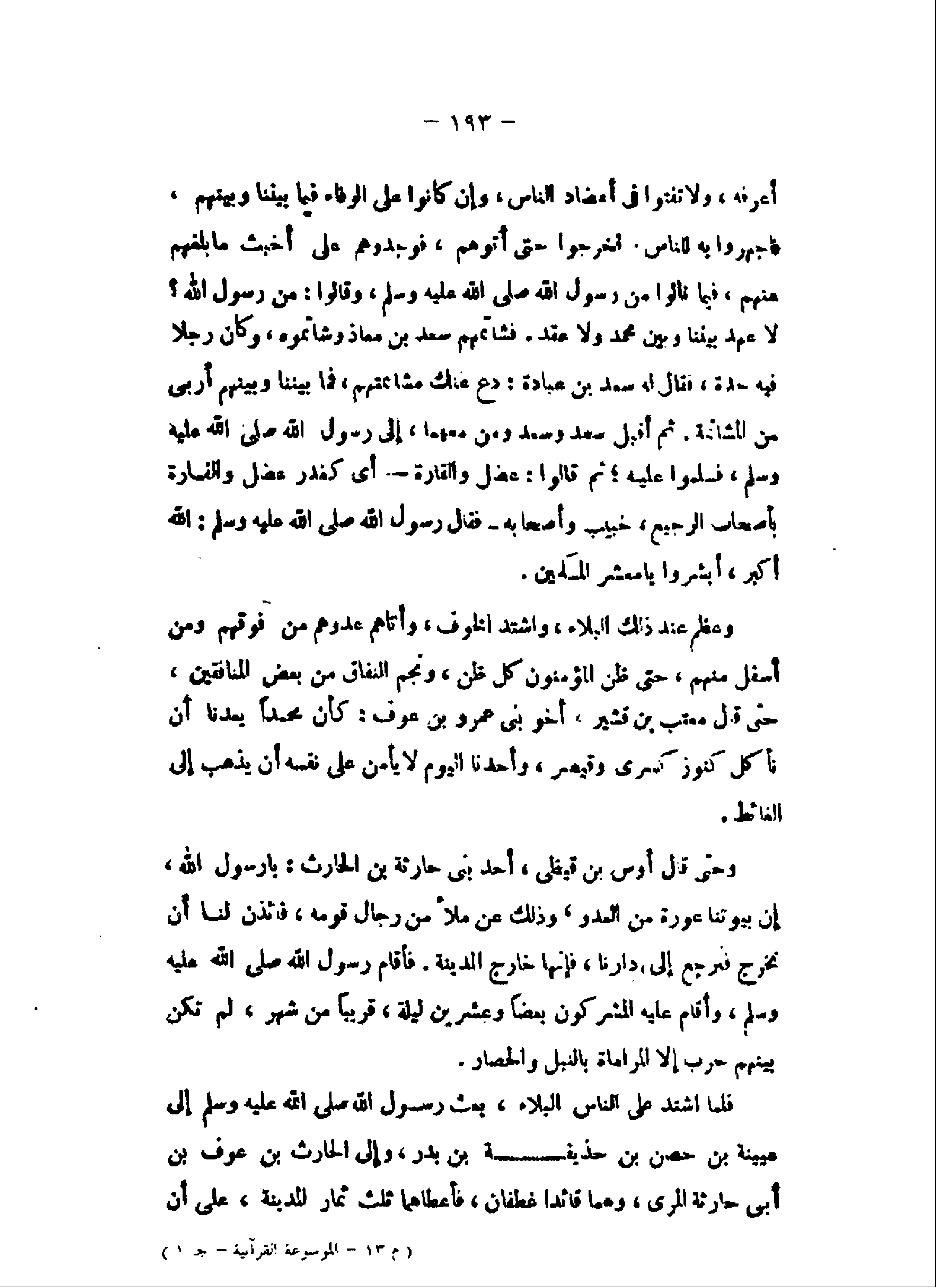 فلما اشتد على الناس البلاء، بعث رسول الله صلى الله عليه وسلم إلى عيينة بن حصن بن حذيفة بن بدر، وإلى الحارث بن عوف بن أبى حارثة المرى، وهما قائدا غطفان، فأعطاهما ثلث ثمار المدينة، على أن (م 13- الموسوعة القرآنية- ج 1)