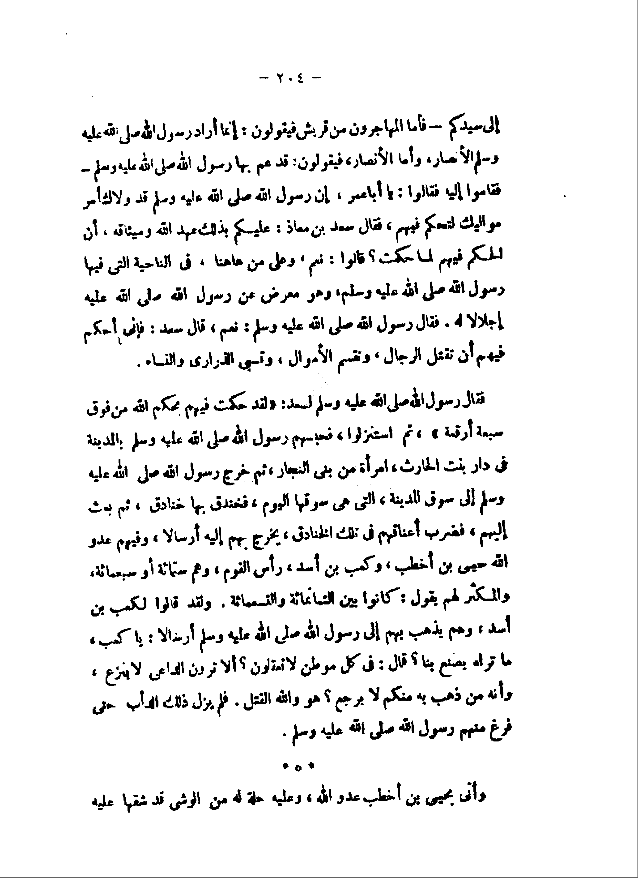 وأتى بحيى بن أخطب عدو الله، وعليه حلة له من الوشى قد شقها عليه