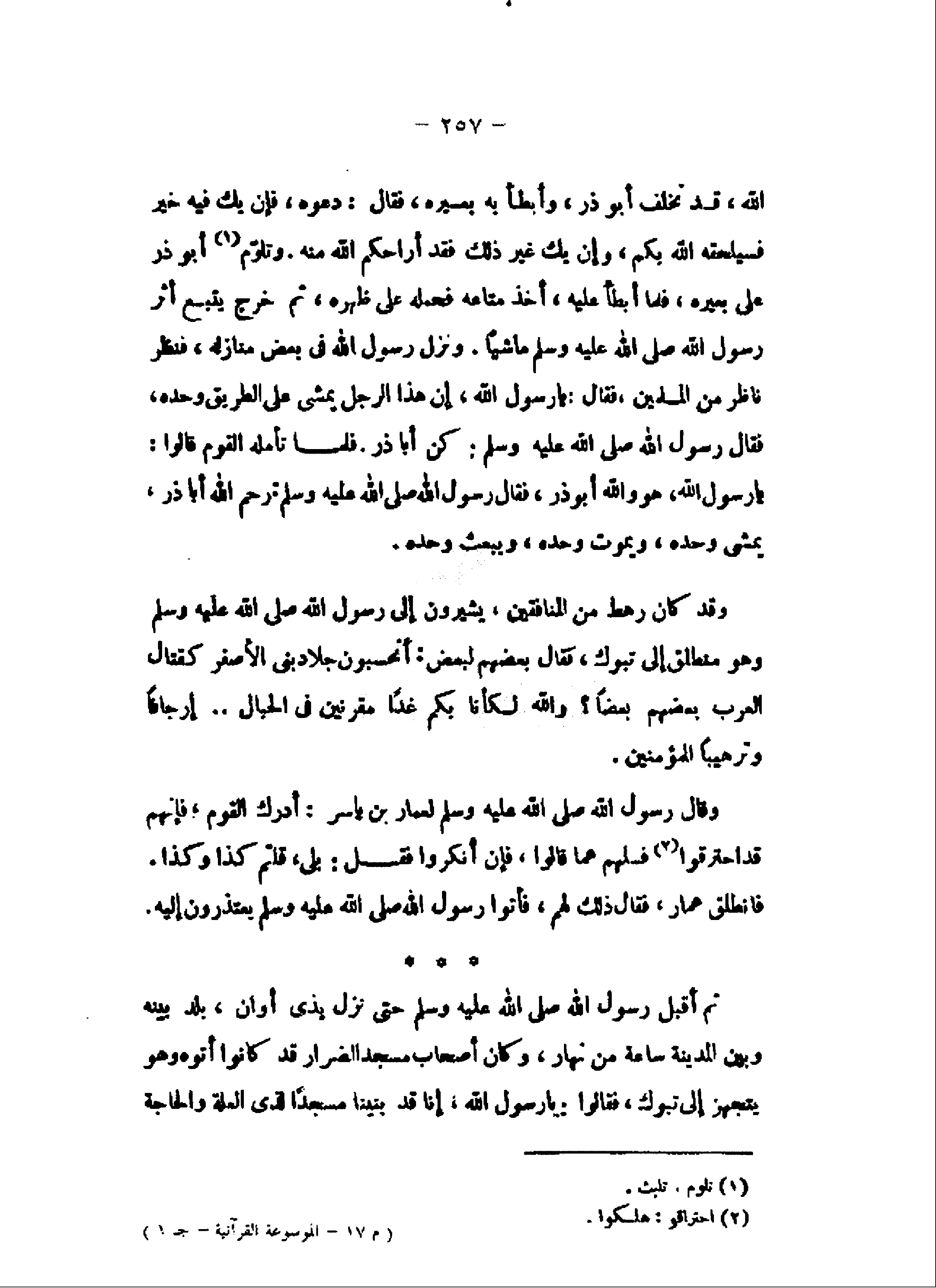 الله، قد تخلف أبوذر، وأبطأ به بعيره، فقال: دعوه، فإن يك فيه خير فسيلحقه الله بكم، وإن يك غير ذلك فقد أراحكم الله منه. وتلوّم «1» أبوذر على بعيره، فلما أبطأ عليه، أخذ متاعه فحمله على ظهره، ثم خرج يتبع أثر رسول الله صلى الله عليه وسلم ماشيا. ونزل رسول الله فى بعض منازله، فنظر ناظر من المسلمين، فقال: يا رسول الله، إن هذا الرجل يمشى على الطريق وحده، فقال رسول الله صلى الله عليه وسلم: كن أباذر. فلما تأمله القوم قالوا: