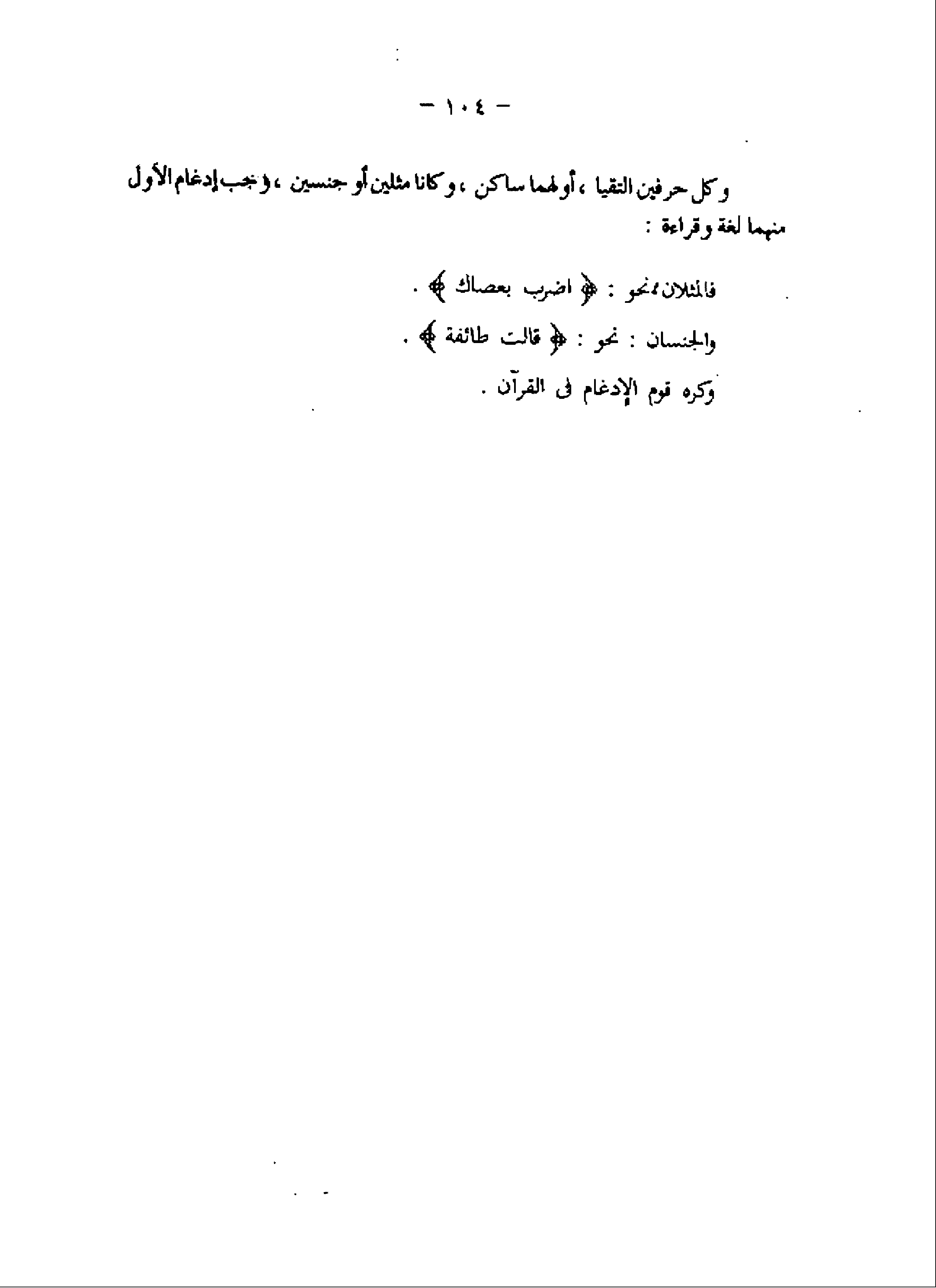 وكل حرفين التقيا، أو لهما ساكن، وكانا مثلين أو جنسين، وجب إدغام الأول منهما لغة وقراءة: