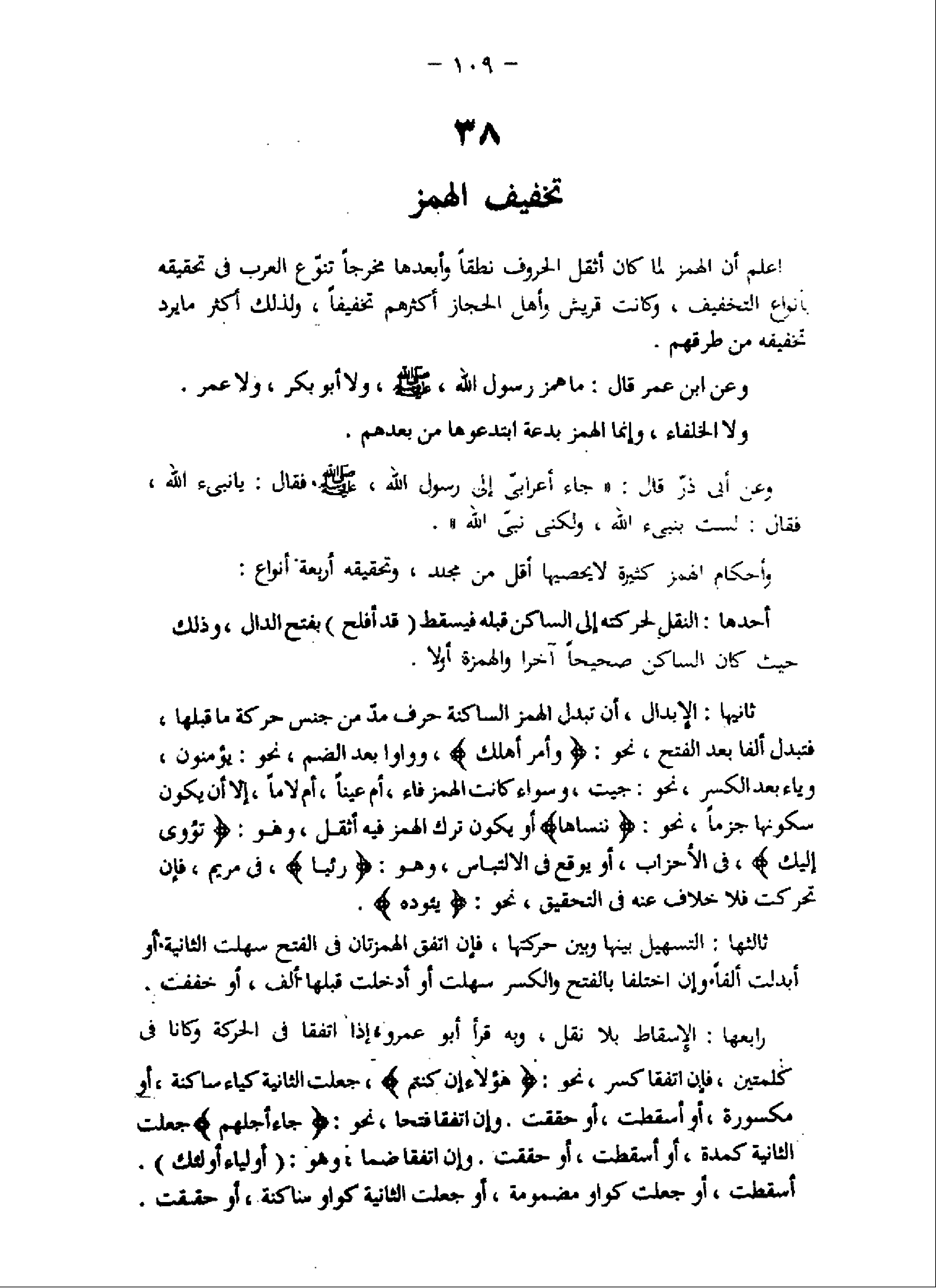 وعن ابن عمر قال: ما همز رسول اللَّه صلّى اللَّه عليه وسلم، ولا أبو بكر، ولا عمر.