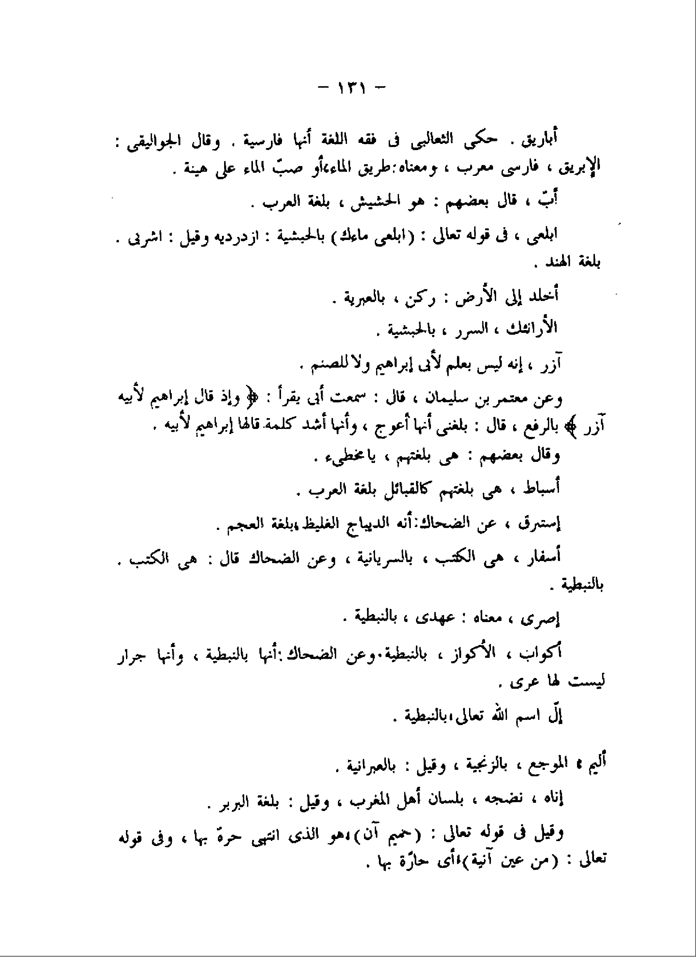 أباريق. حكى الثعالبى فى فقه اللغة أنها فارسية. وقال الجواليقى: