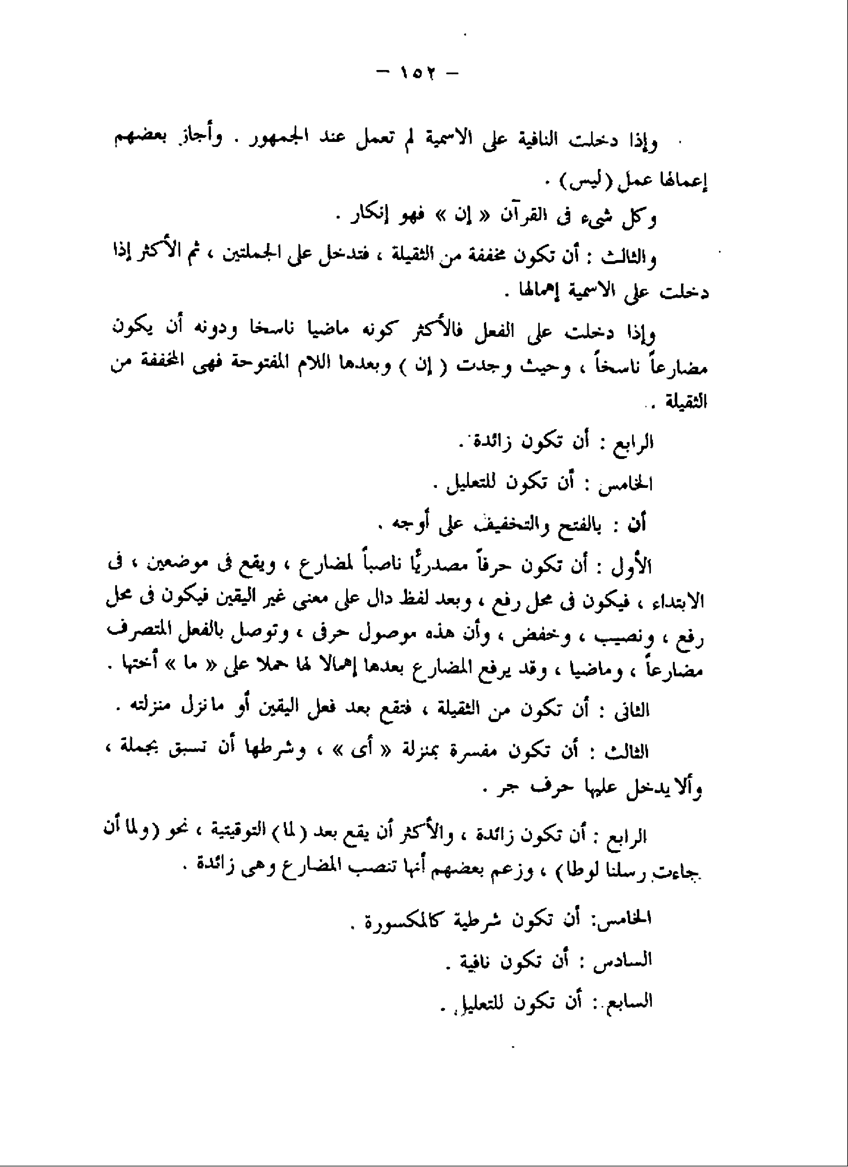 الأول: أن تكون حرفا مصدريّا ناصبا لمضارع، ويقع فى موضعين، فى الابتداء، فيكون فى محل رفع، وبعد لفظ دال على معنى غير اليقين فيكون فى محل رفع، ونصيب، وخفض، وأن هذه موصول حرفى، وتوصل بالفعل المتصرف مضارعا، وماضيا، وقد يرفع المضارع بعدها إهمالا لها حملا على «ما» أختها.
