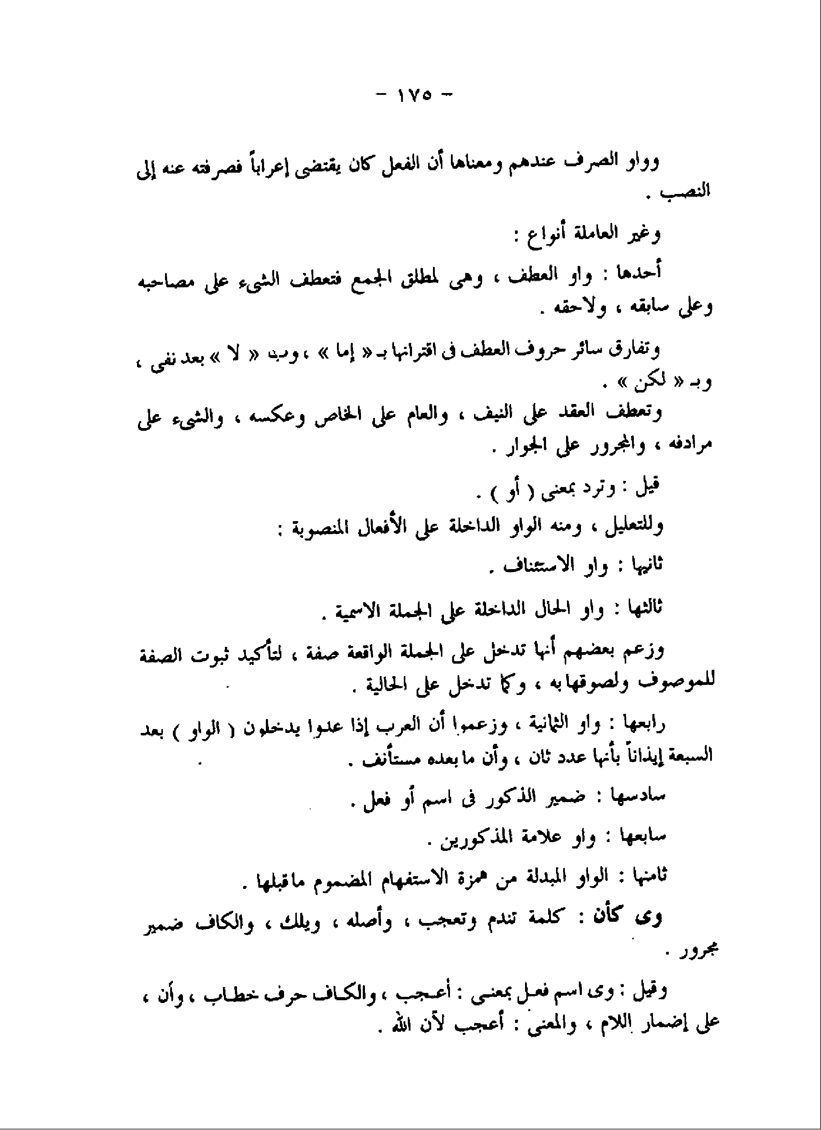 أحدها: واو العطف، وهى لمطلق الجمع فتعطف الشىء على مصاحبه وعلى سابقه، ولا حقه.