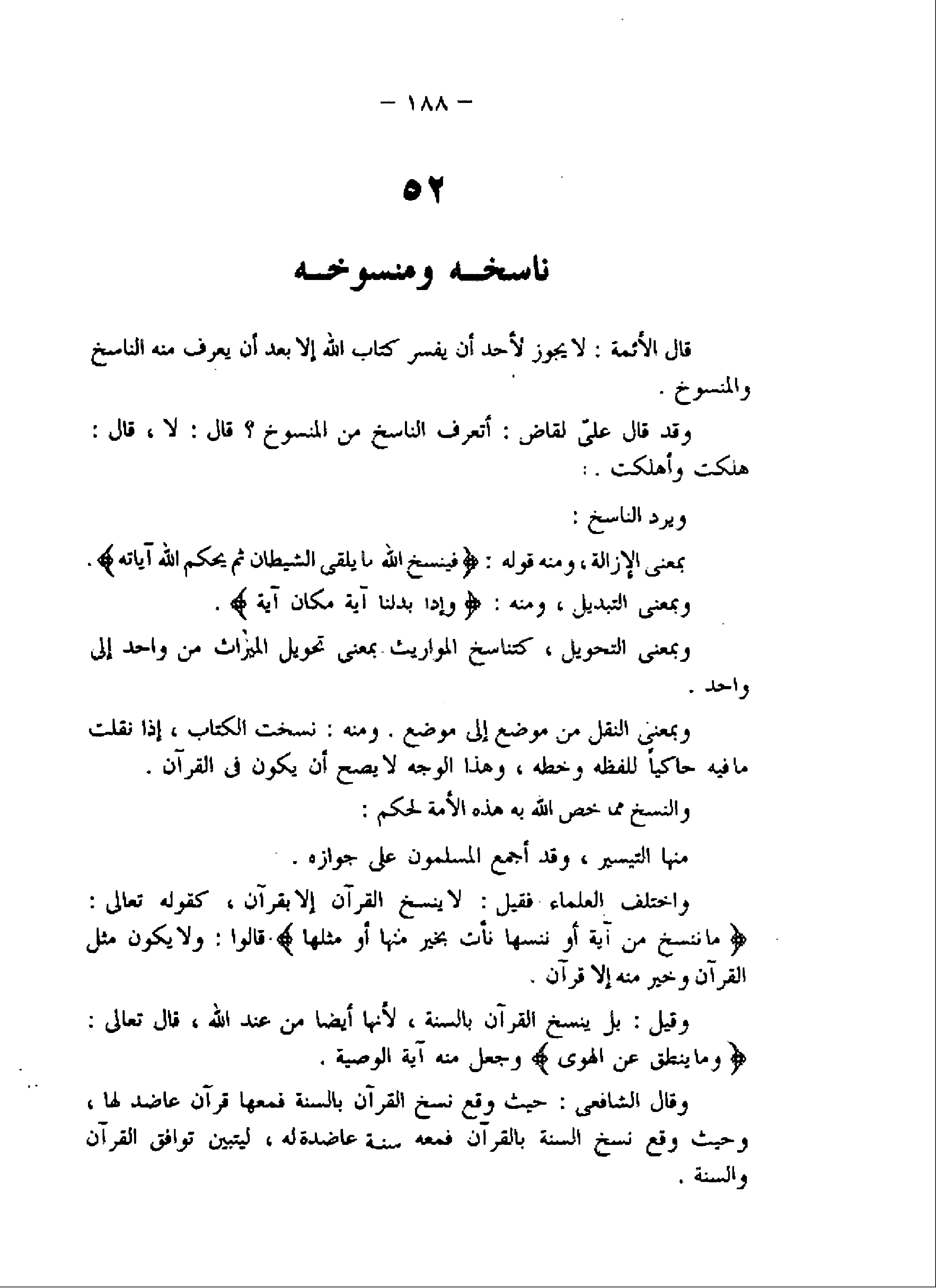 قال الأئمة: لا يجوز لأحد أن يفسر كتاب اللَّه إلا بعد أن يعرف منه الناسخ والمنسوخ.