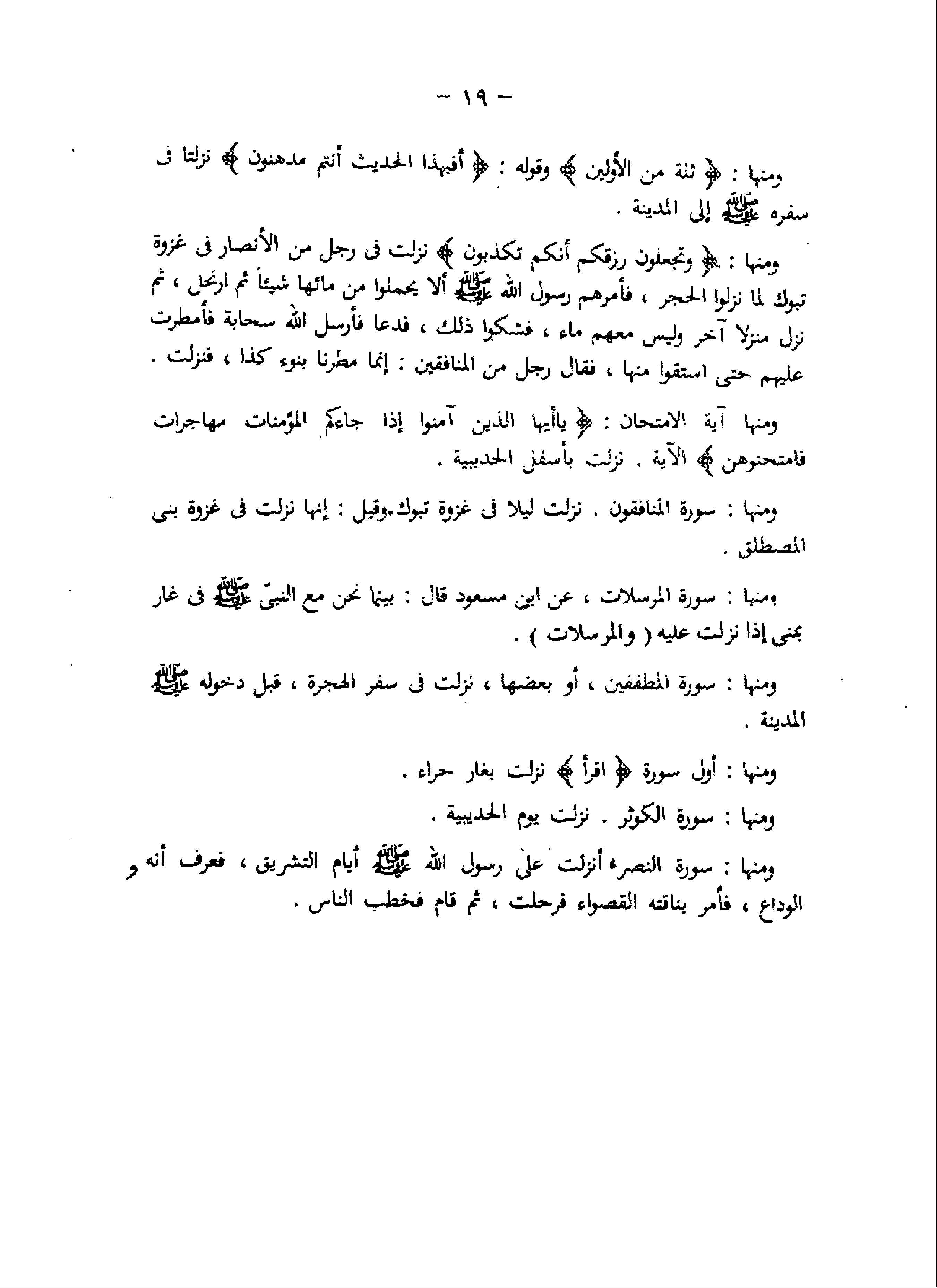 ومنها: سورة المنافقون. نزلت ليلا فى غزوة تبوك. وقيل: إنها نزلت فى غزوة بنى المصطلق.