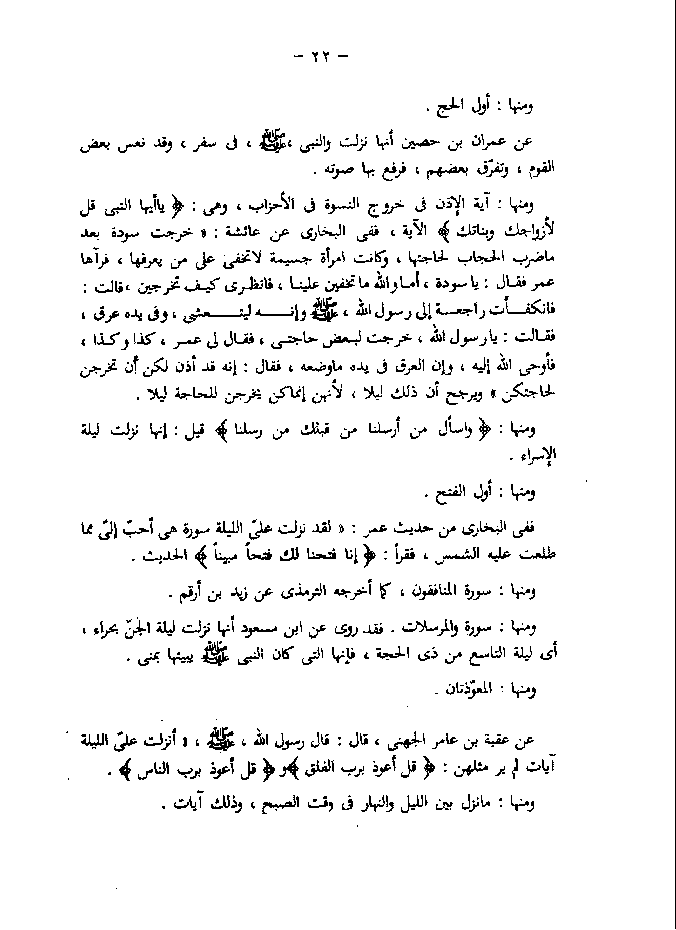 عن عمران بن حصين أنها نزلت والنبى، صلّى اللَّه عليه وسلم، فى سفر، وقد نعس بعض القوم، وتفرّق بعضهم، فرفع بها صوته.