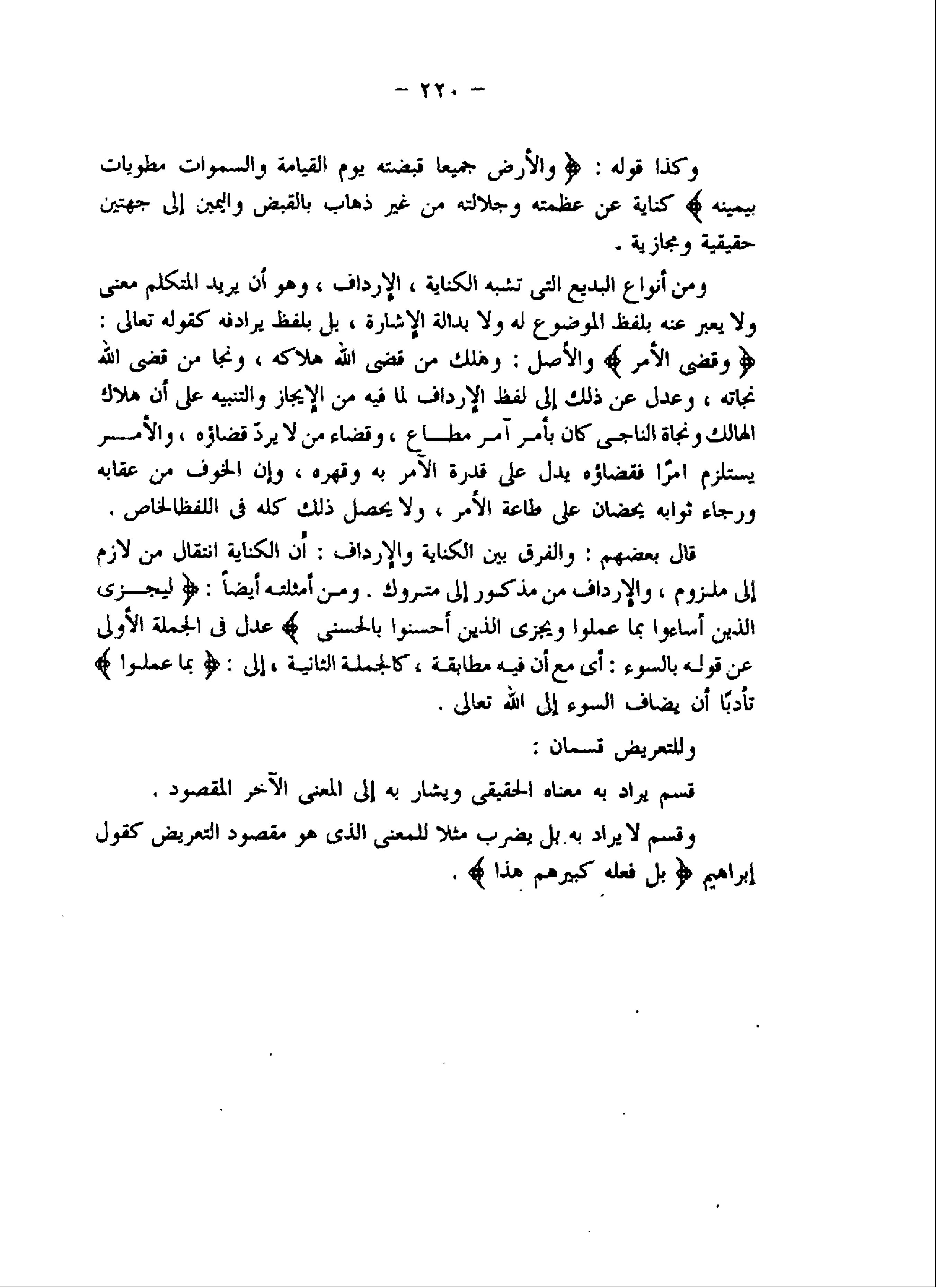 ومن أنواع البديع التي تشبه الكناية، الإرداف، وهو أن يريد المتكلم معنى ولا يعبر عنه بلفظ الموضوع له ولا بدالة الإشارة، بل بلفظ يرادفه كقوله تعالى: