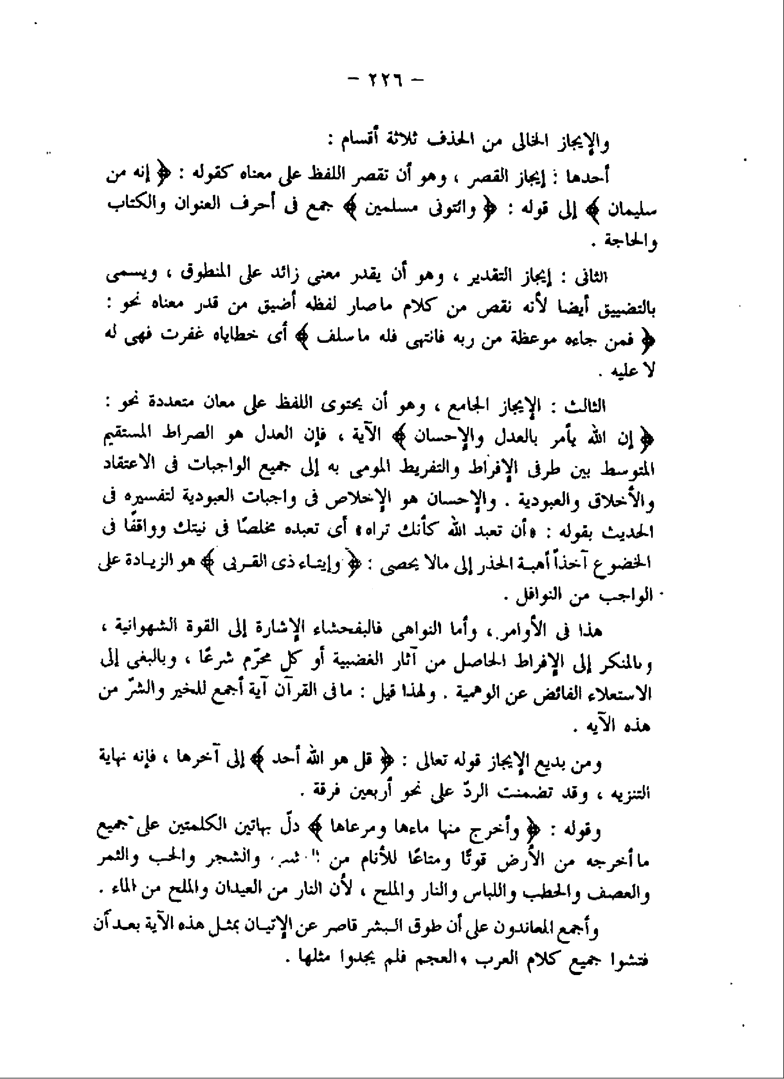 ومن بديع الإيجاز قوله تعالى: قُلْ هُوَ اللَّهُ أَحَدٌ إلى آخرها، فإنه نهاية التنزيه، وقد تضمنت الردّ على نحو أربعين فرقة.