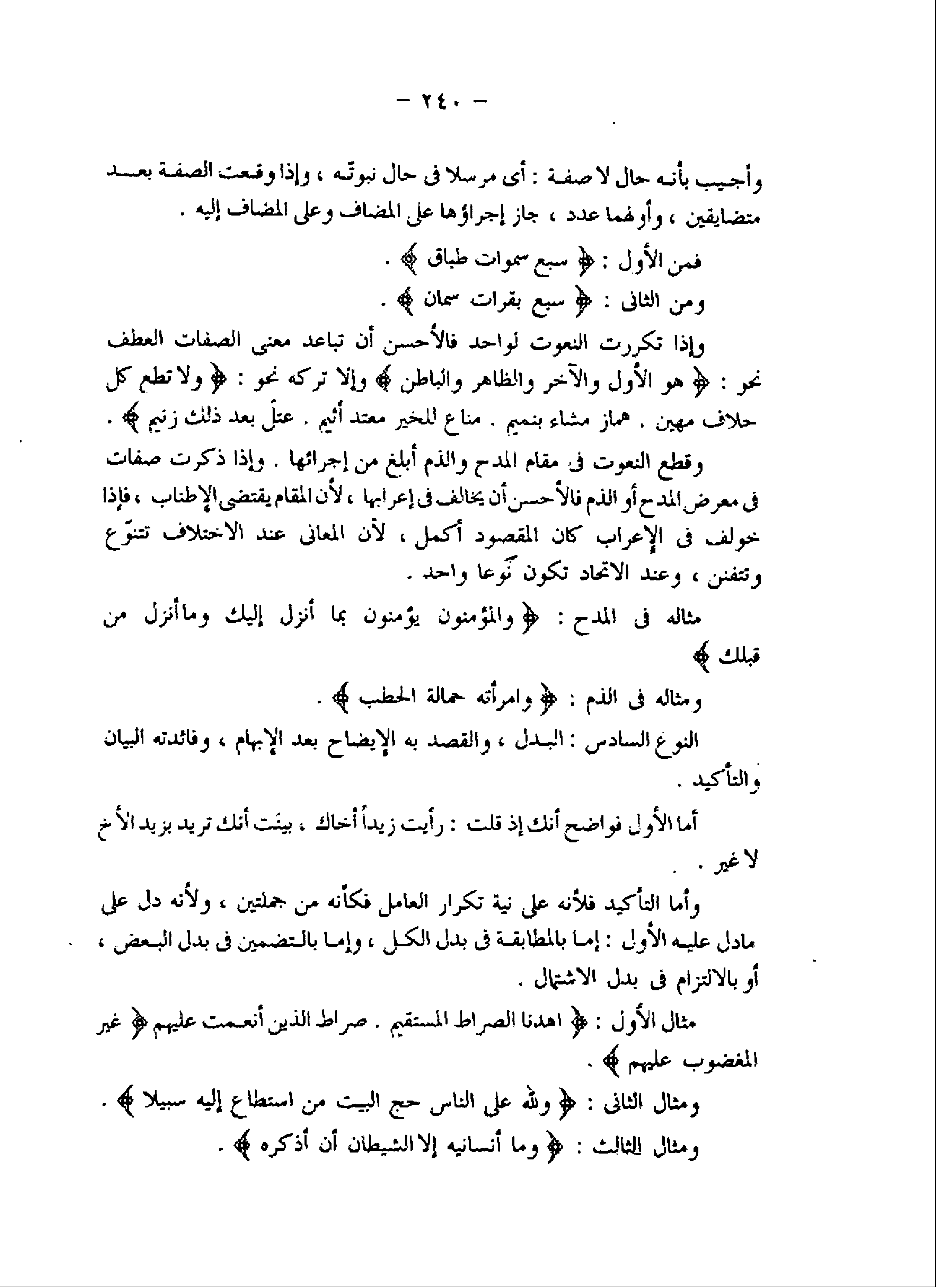 مثال الأول: اهْدِنَا الصِّراطَ الْمُسْتَقِيمَ. صِراطَ الَّذِينَ أَنْعَمْتَ عَلَيْهِمْ غَيْرِ الْمَغْضُوبِ عَلَيْهِمْ.
