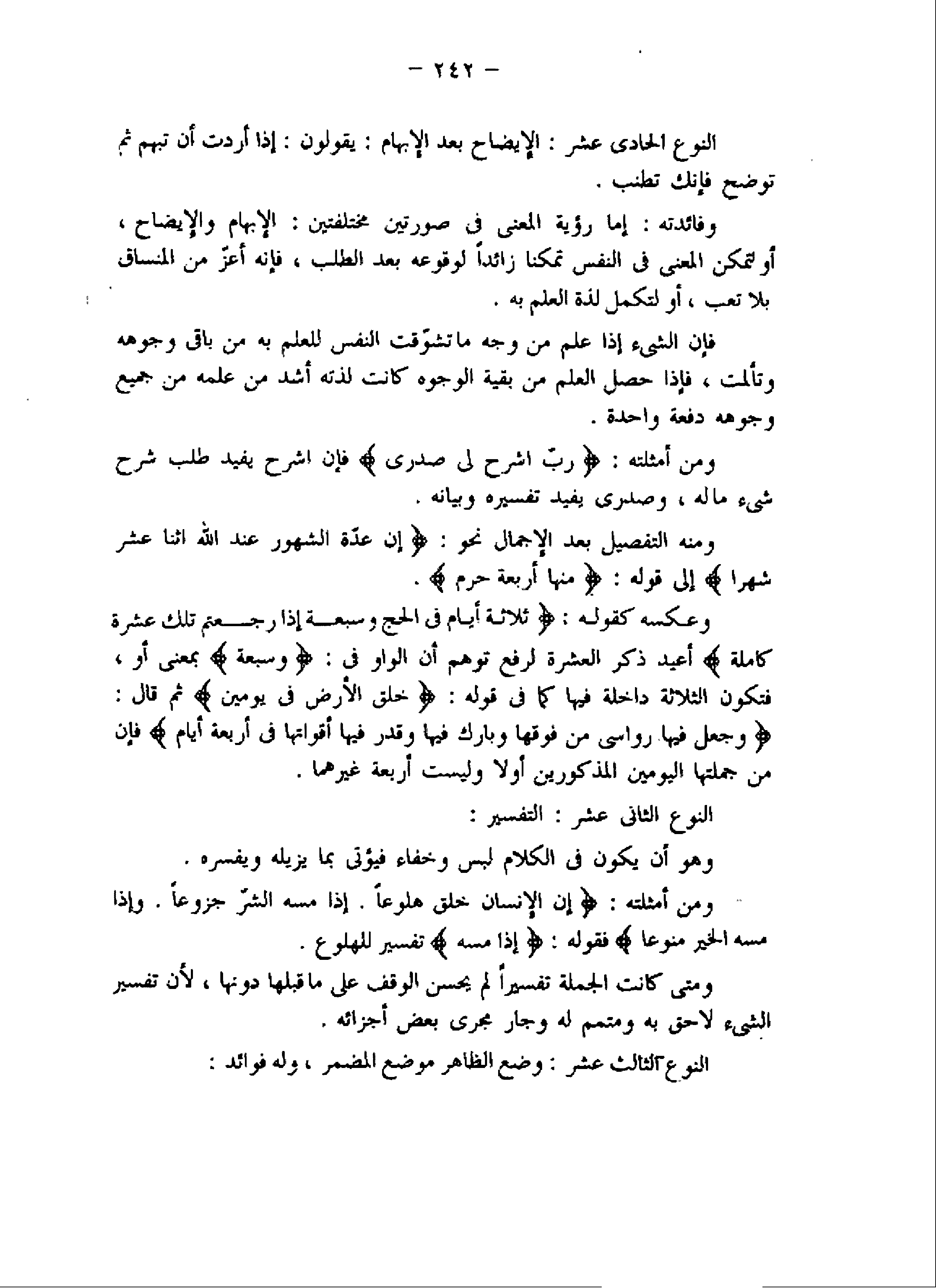 النوع الحادى عشر: الإيضاح بعد الإبهام: يقولون: إذا أردت أن تبهم ثم توضح فإنك تطنب.