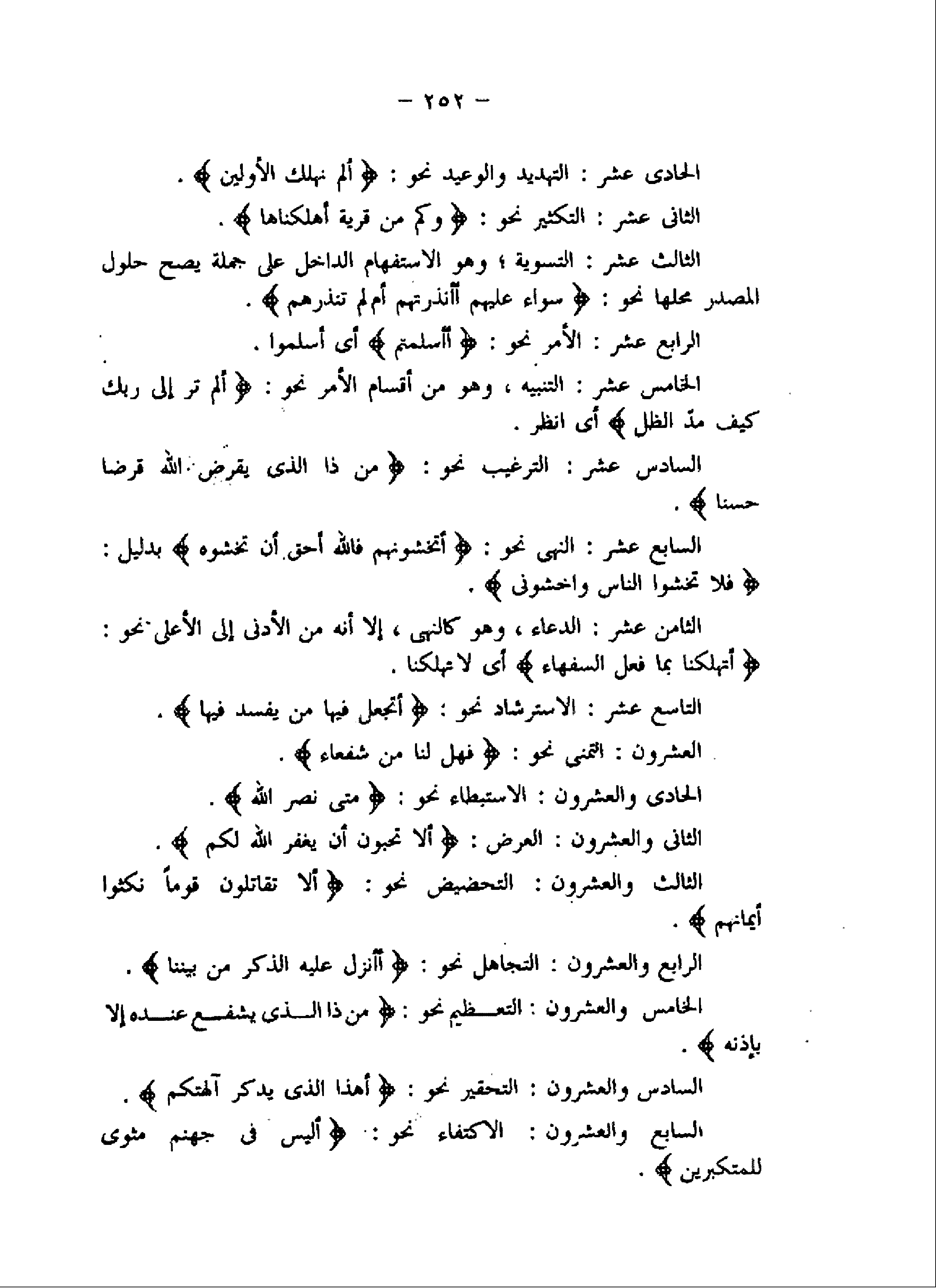 الحادى عشر: التهديد والوعيد نحو: أَلَمْ نُهْلِكِ الْأَوَّلِينَ.