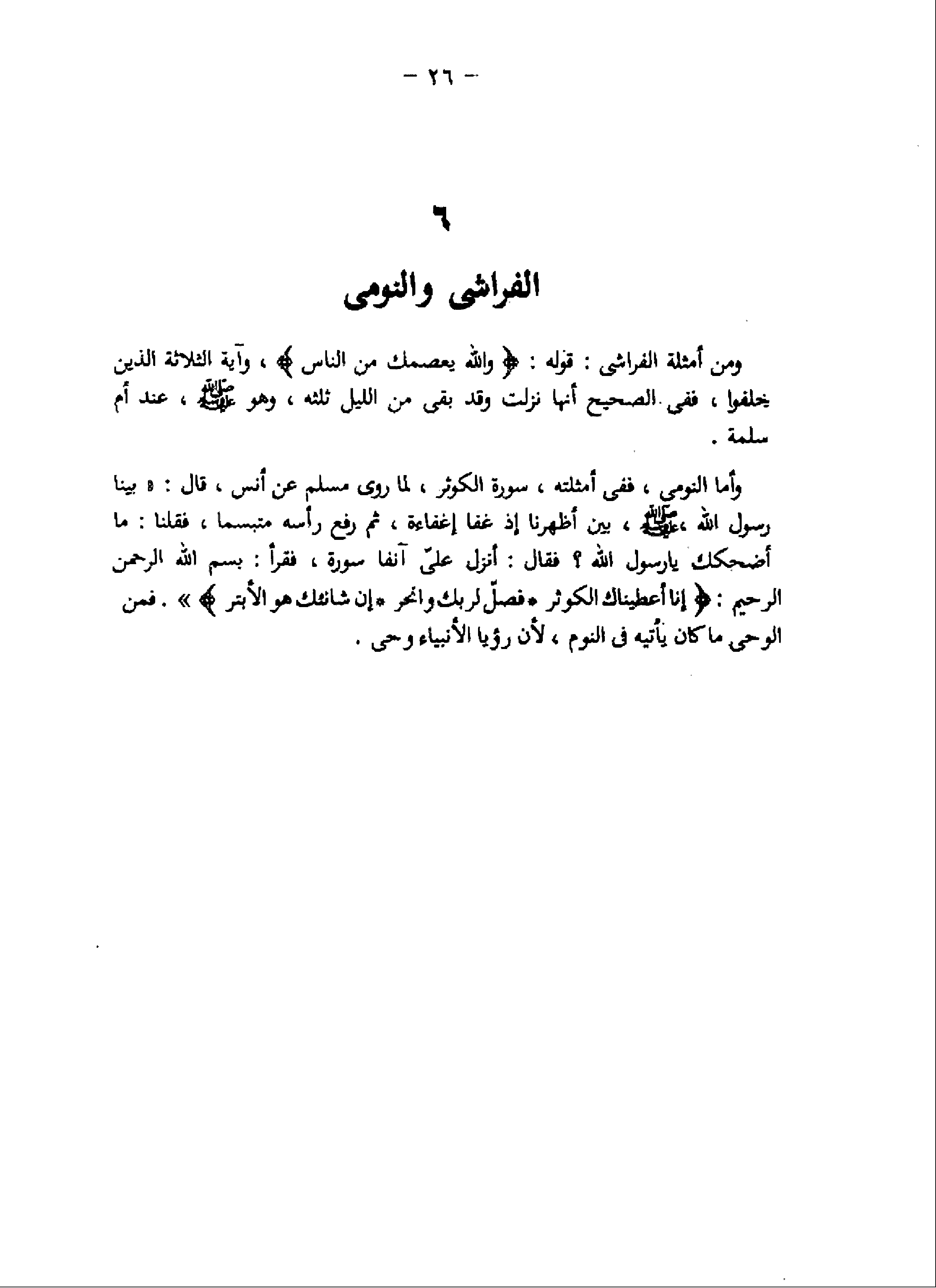 وأما النومى، ففى أمثلته، سورة الكوثر، لما