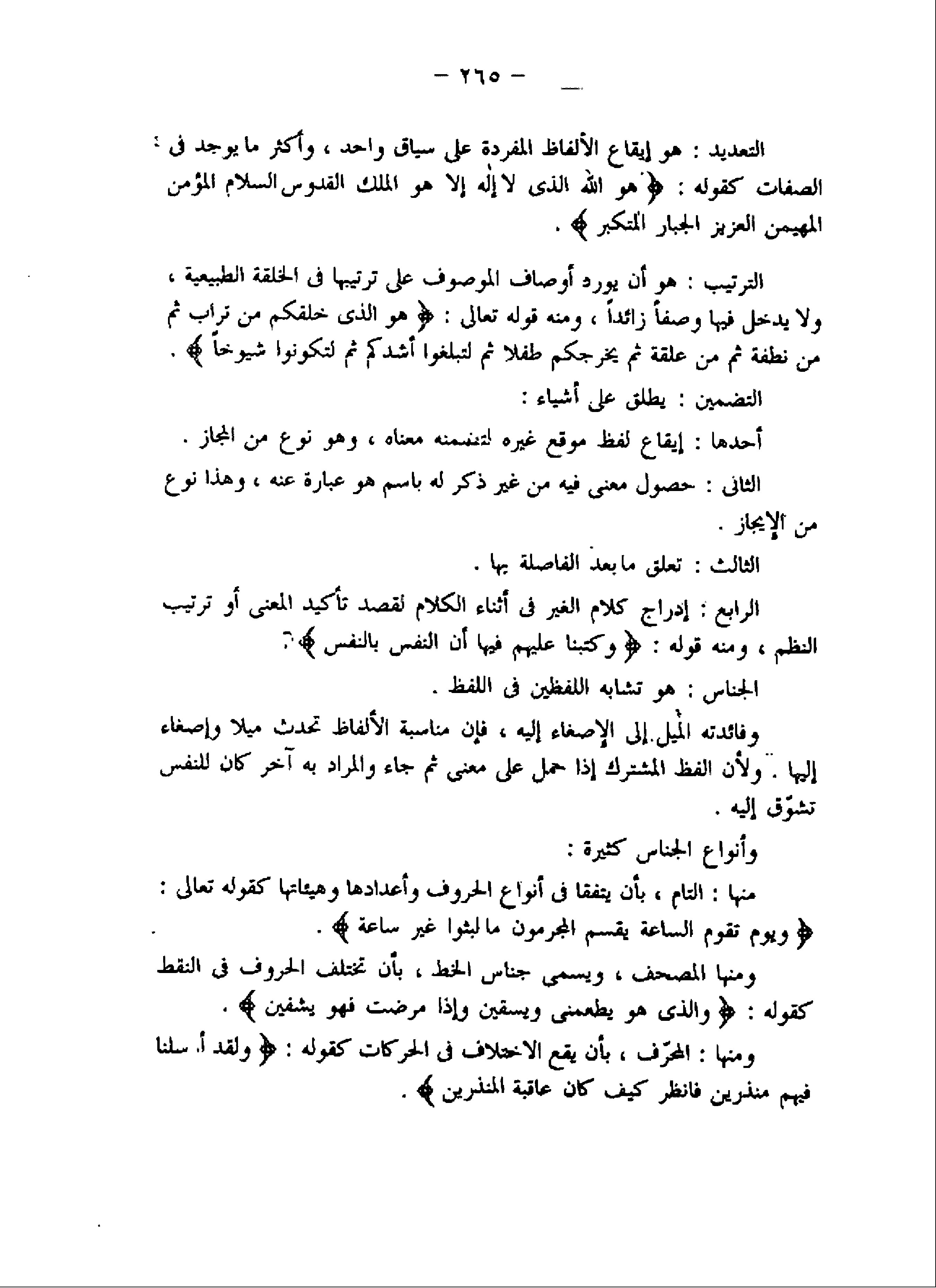 الترتيب: هو أن يورد أوصاف الموصوف على ترتيبها فى الخلقة الطبيعية، ولا يدخل فيها وصفا زائدا، ومنه قوله تعالى: هُوَ الَّذِي خَلَقَكُمْ مِنْ تُرابٍ ثُمَّ مِنْ نُطْفَةٍ ثُمَّ مِنْ عَلَقَةٍ ثُمَّ يُخْرِجُكُمْ طِفْلًا ثُمَّ لِتَبْلُغُوا أَشُدَّكُمْ ثُمَّ لِتَكُونُوا شُيُوخاً.