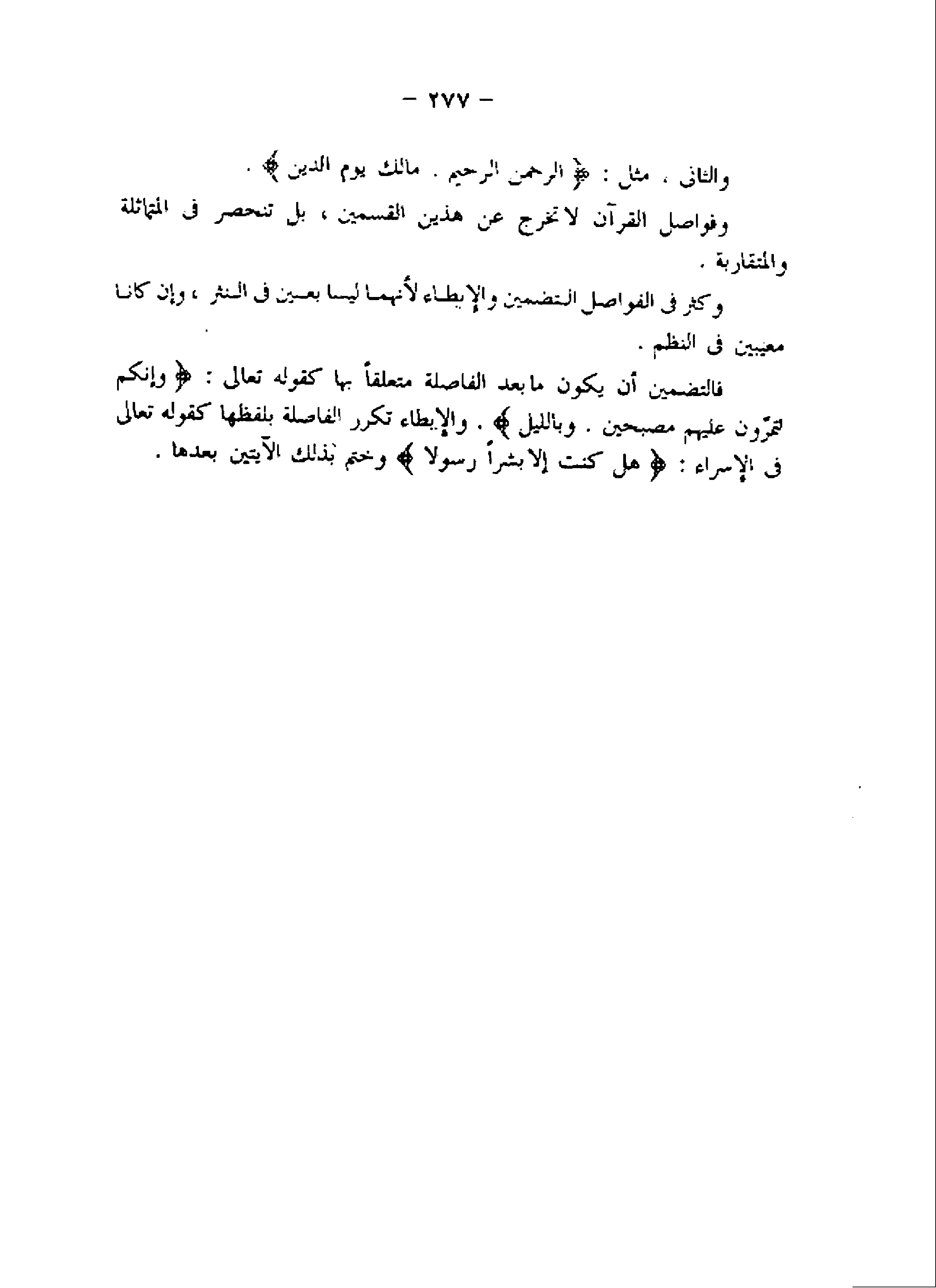 وكثر فى الفواصل التضمين والإيطاء لأنهما ليسا بعين فى النثر، وإن كانا معيبين فى النظم.