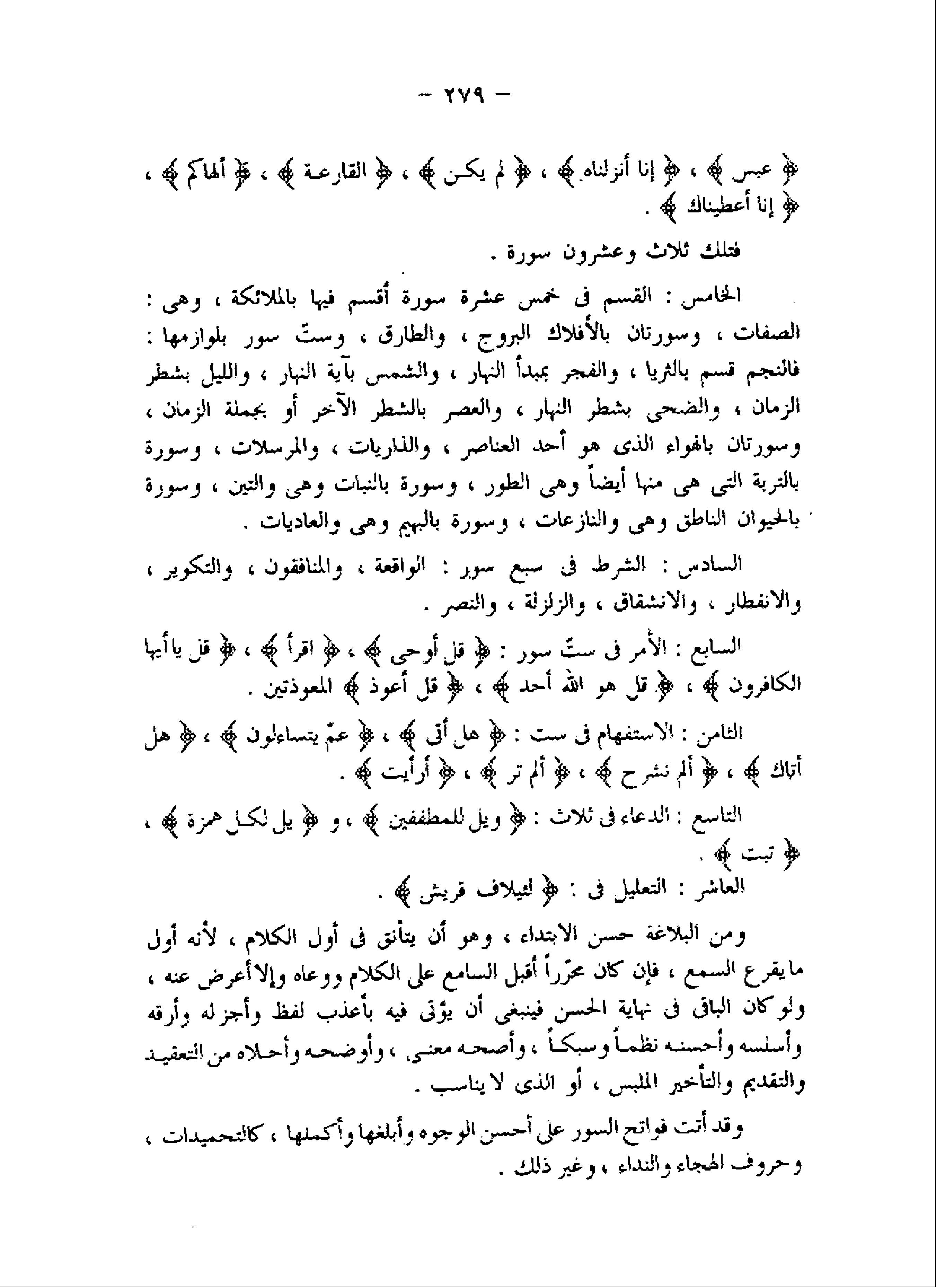 الصفات، وسورتان بالأفلاك البروج، والطارق، وستّ سور بلوازمها: