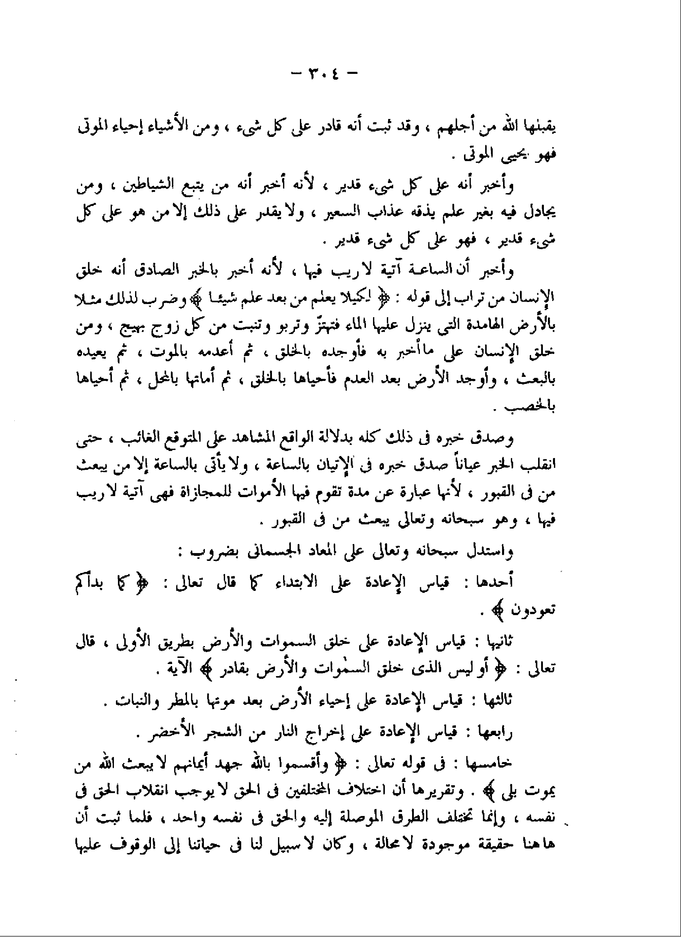 ثانيها: قياس الإعادة على خلق السموات والأرض بطريق الأولى، قال تعالى: أَوَلَيْسَ الَّذِي خَلَقَ السَّماواتِ وَالْأَرْضَ بِقادِرٍ الآية.