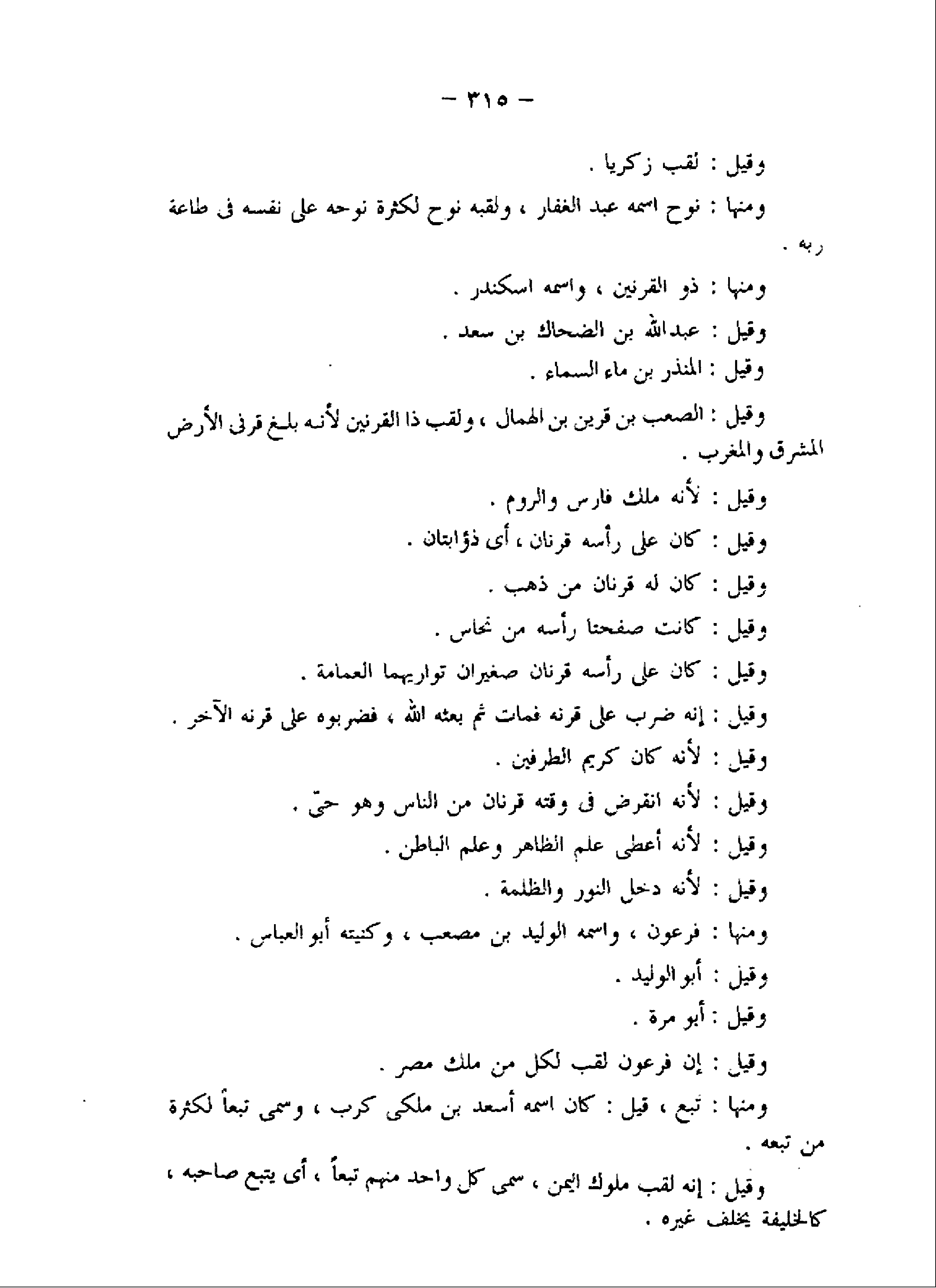 وقيل: الصعب بن قرين بن الهمال، ولقب ذا القرنين لأنه بلغ قرنى الأرض المشرق والمغرب.