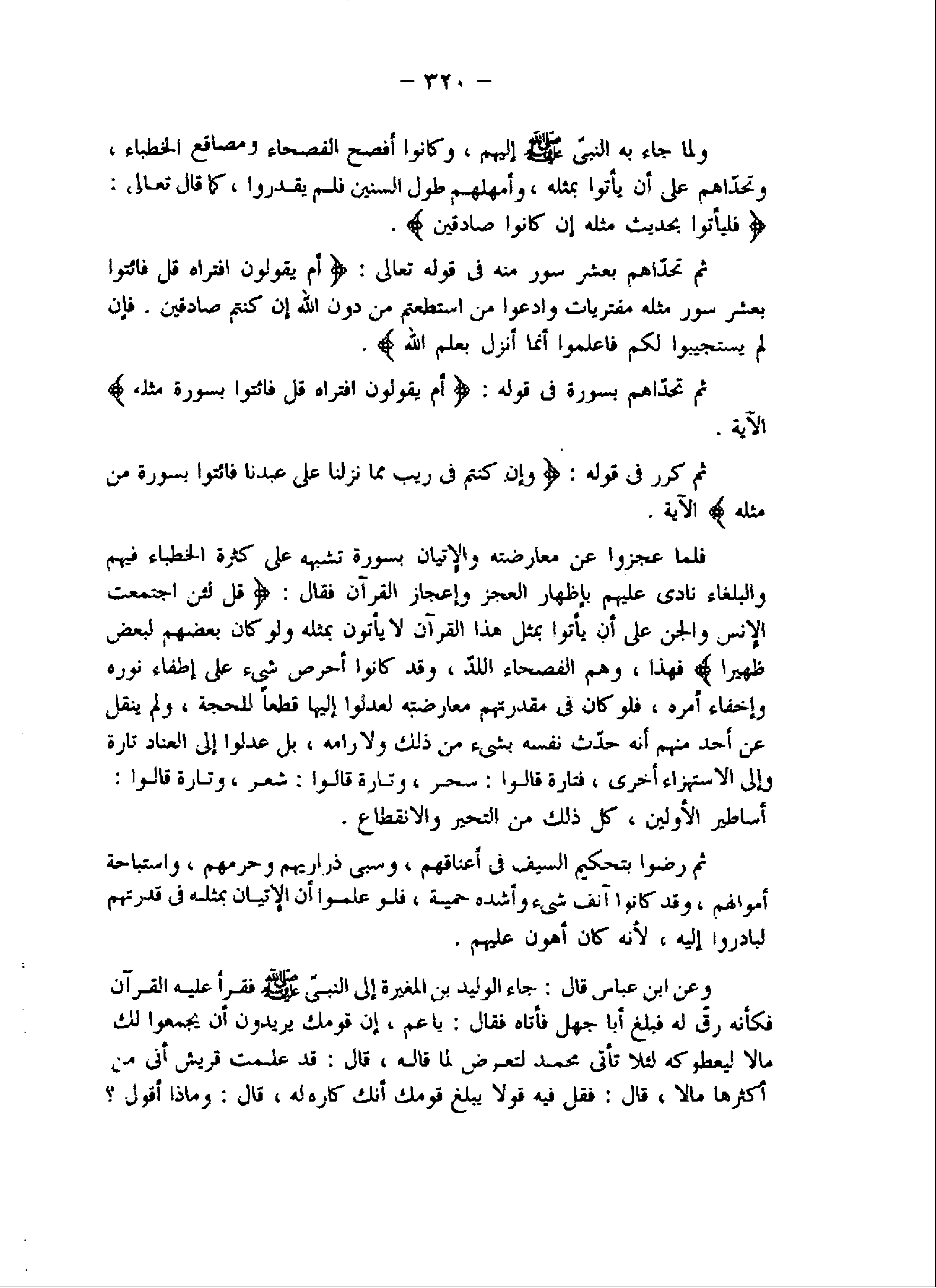 ولما جاء به النبىّ صلّى اللَّه عليه وسلم إليهم، وكانوا أفصح الفصحاء ومصاقع الخطباء، وتحدّاهم على أن يأتوا بمثله، وأمهلهم طول السنين فلم يقدروا، كما قال تعالى: