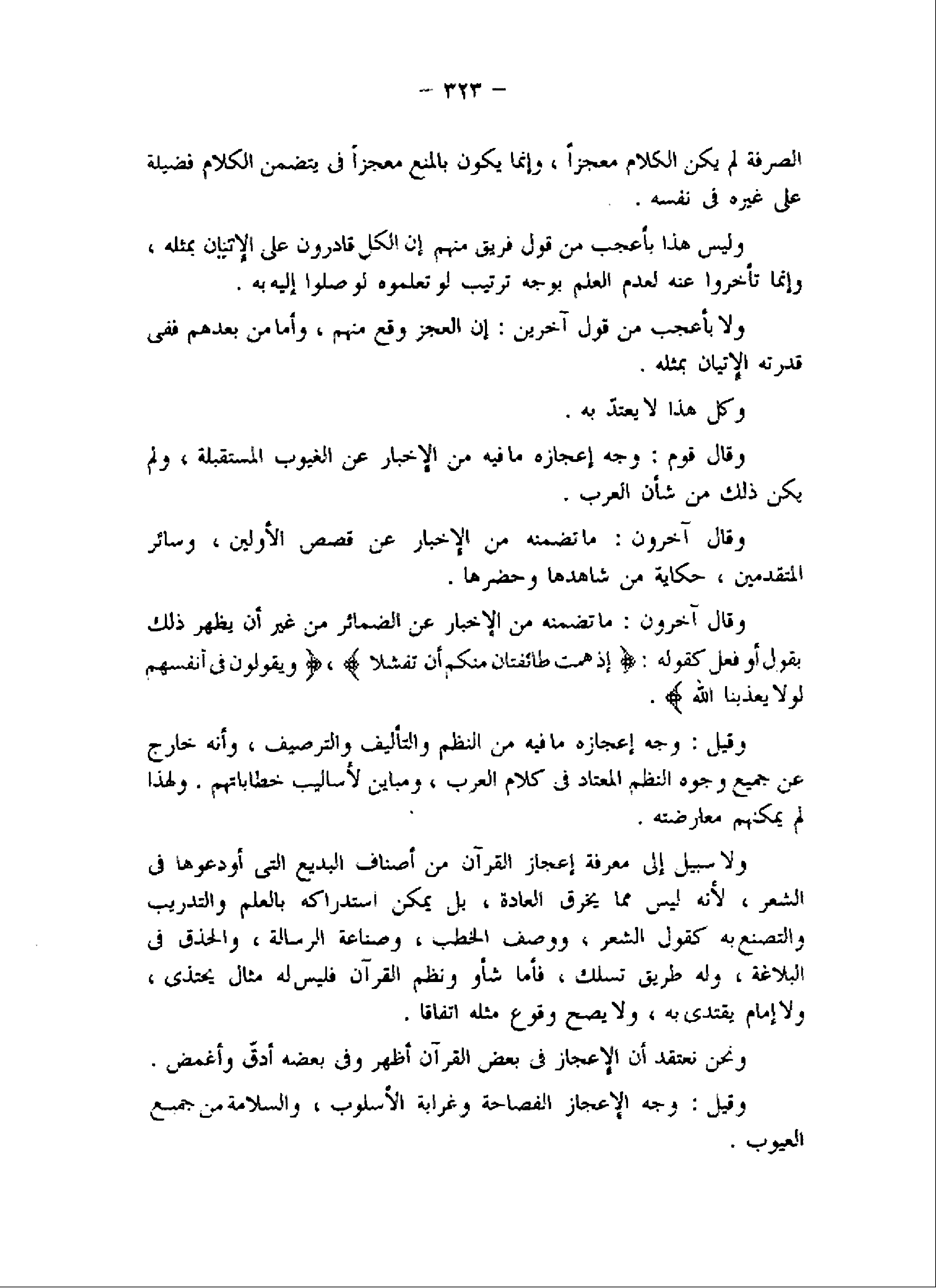 الصرفة لم يكن الكلام معجزا، وإنما يكون بالمنع معجزا فى يتضمن الكلام فضيلة على غيره فى نفسه.