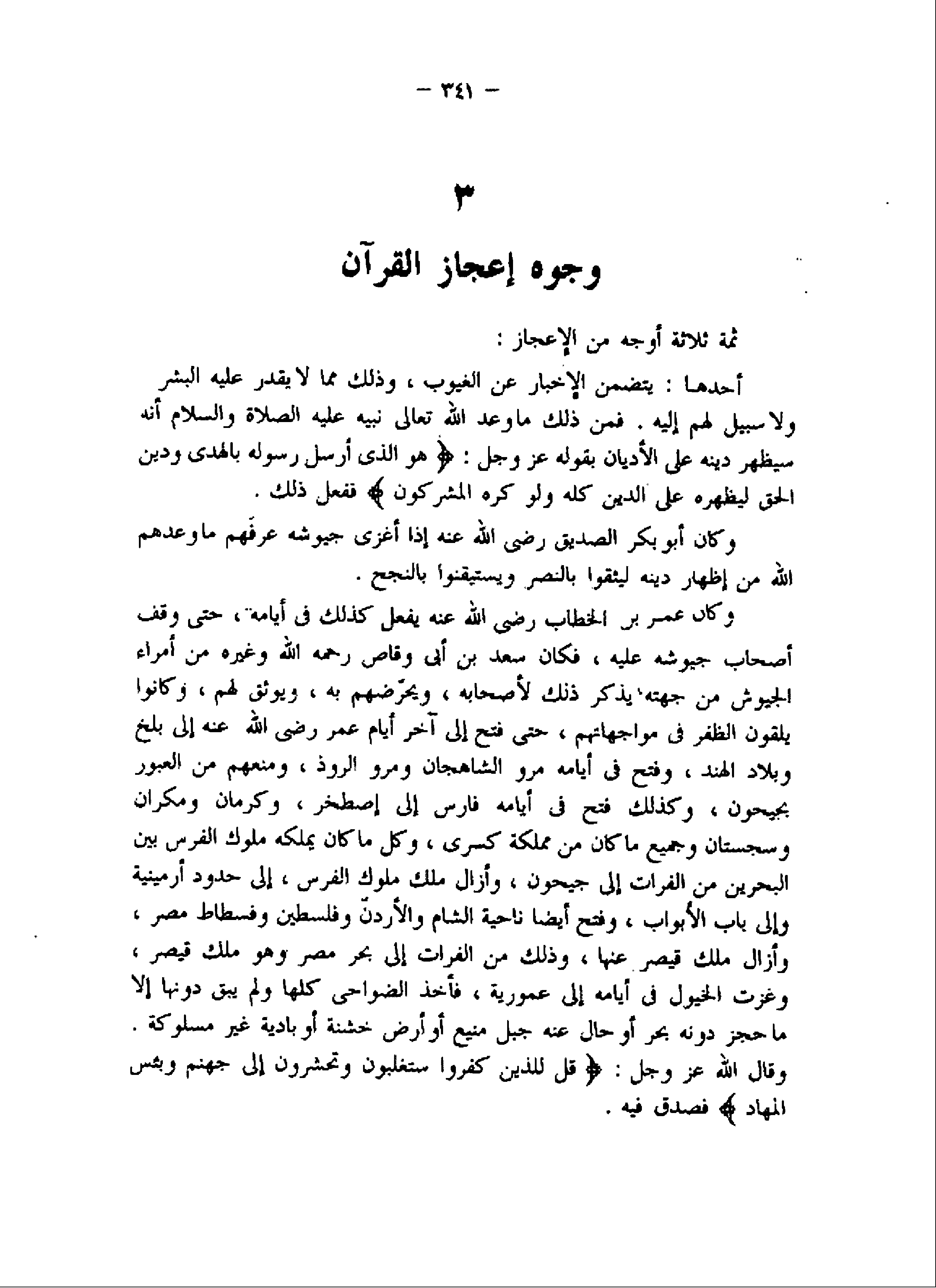 وكان عمر بن الخطاب رضى اللَّه عنه يفعل كذلك فى أيامه، حتى وقف أصحاب جيوشه عليه، فكان سعد بن أبى وقاص رحمه اللَّه وغيره من أمراء الجيوش من جهته يذكر ذلك لأصحابه، ويحرّضهم به، ويوثق لهم، وكانوا يلقون الظفر فى مواجهاتهم، حتى فتح إلى آخر أيام عمر رضى اللَّه عنه إلى بلخ وبلاد الهند، وفتح فى أيامه مرو الشاهجان ومرو الروذ، ومنعهم من العبور بجيحون، وكذلك فتح فى أيامه فارس إلى إصطخر، وكرمان ومكران وسجستان وجميع ما كان من مملكة كسرى، وكل ما كان يملكه ملوك الفرس بين البحرين من الفرات إلى جيحون، وأزال ملك ملوك الفرس، إلى حدود أرمينية وإلى باب الأبواب، وفتح أيضا ناحية الشام والأردنّ وفلسطين وفسطاط مصر، وأزال ملك قيصر عنها، وذلك من الفرات إلى بحر مصر وهو ملك قيصر، وغزت الخيول فى أيامه إلى عمورية، فأخذ الضواحى كلها ولم يبق دونها إلا ما حجز دونه بحر أو حال عنه جبل منيع أو أرض خشنة أو بادية غير مسلوكة.