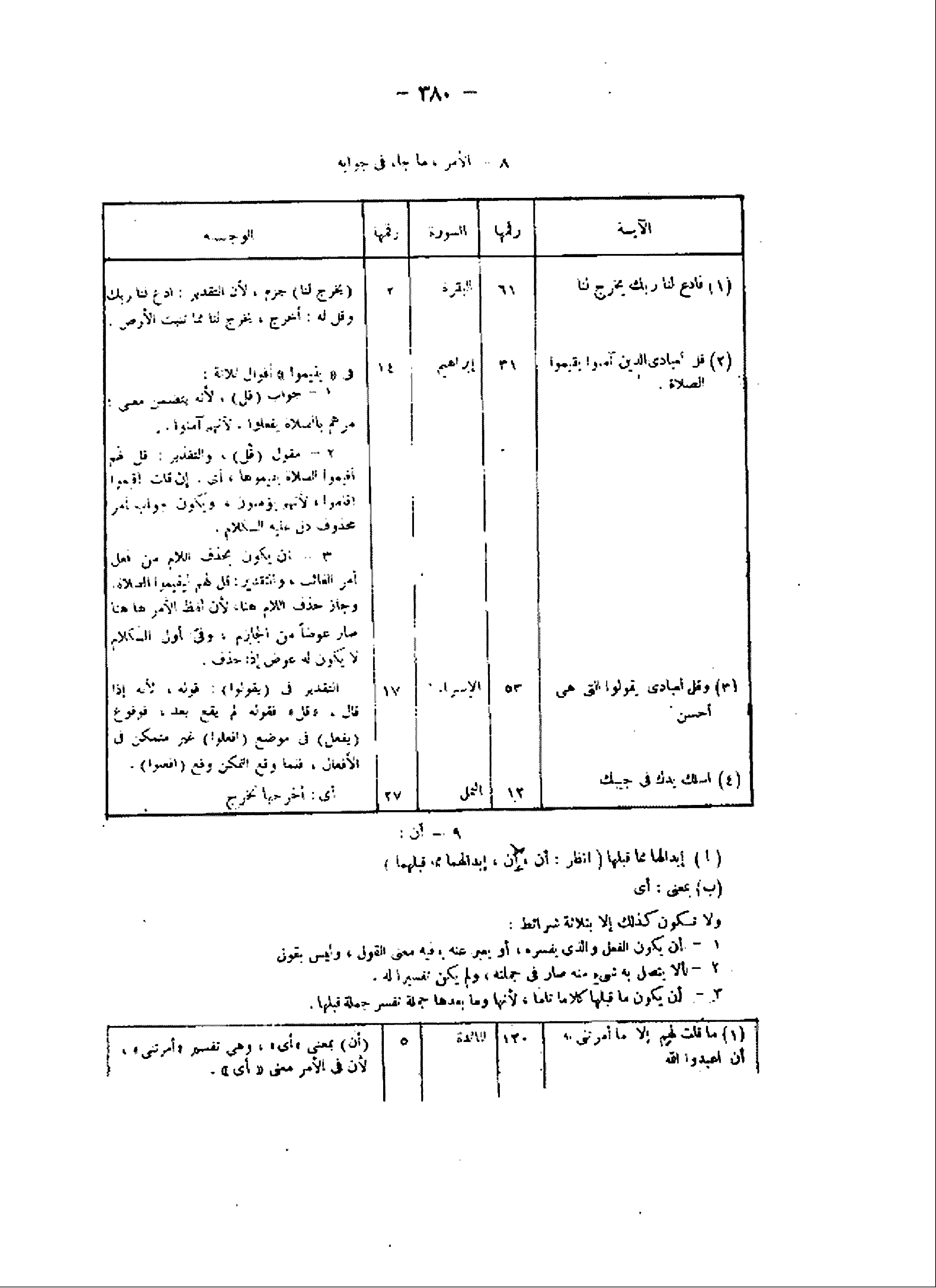 8- الأمر، ما جاء فى جوابه الآية/ رقمها/ السورة/ رقمها/ الوجه (1) فَادْعُ لَنا رَبَّكَ يُخْرِجْ لَنا/ 61/ البقرة/ 2/ (يخرج لنا) جزم، لأن التقدير: ادع لنا ربك وقيل له: أخرج، يخرج لنا مما تنبت الأرض.