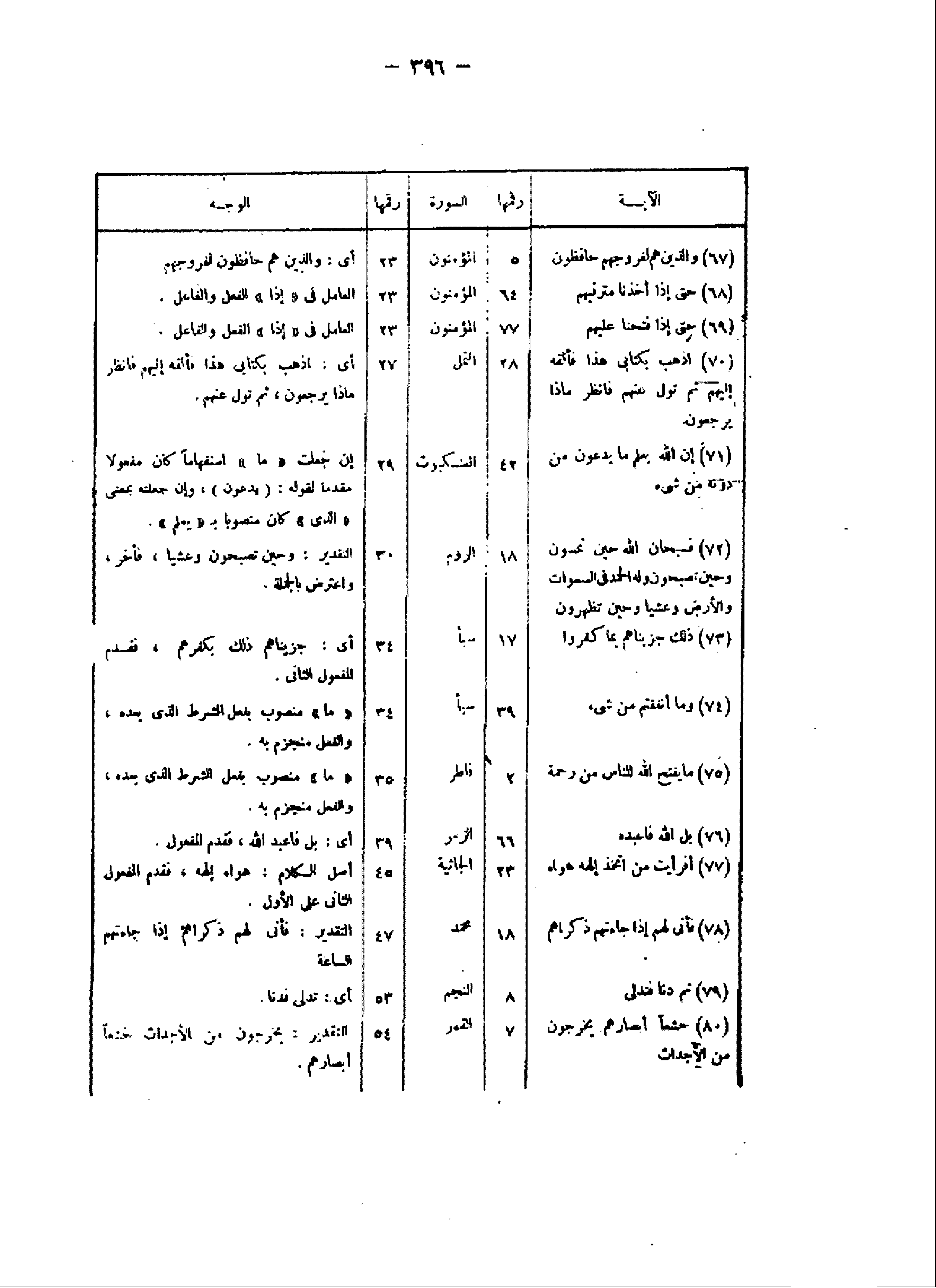 (لآية/ رقمها/ السورة/ رقمها/ الوجه (67) وَالَّذِينَ هُمْ لِفُرُوجِهِمْ حافِظُونَ/ 5/ المؤمنون/ 23/ أى: والذين هم حافظون لفروجهم (68) حَتَّى إِذا أَخَذْنا مُتْرَفِيهِمْ/ 64/ المؤمنون/ 23/ العامل فى «إذا» الفعل والفاعل.