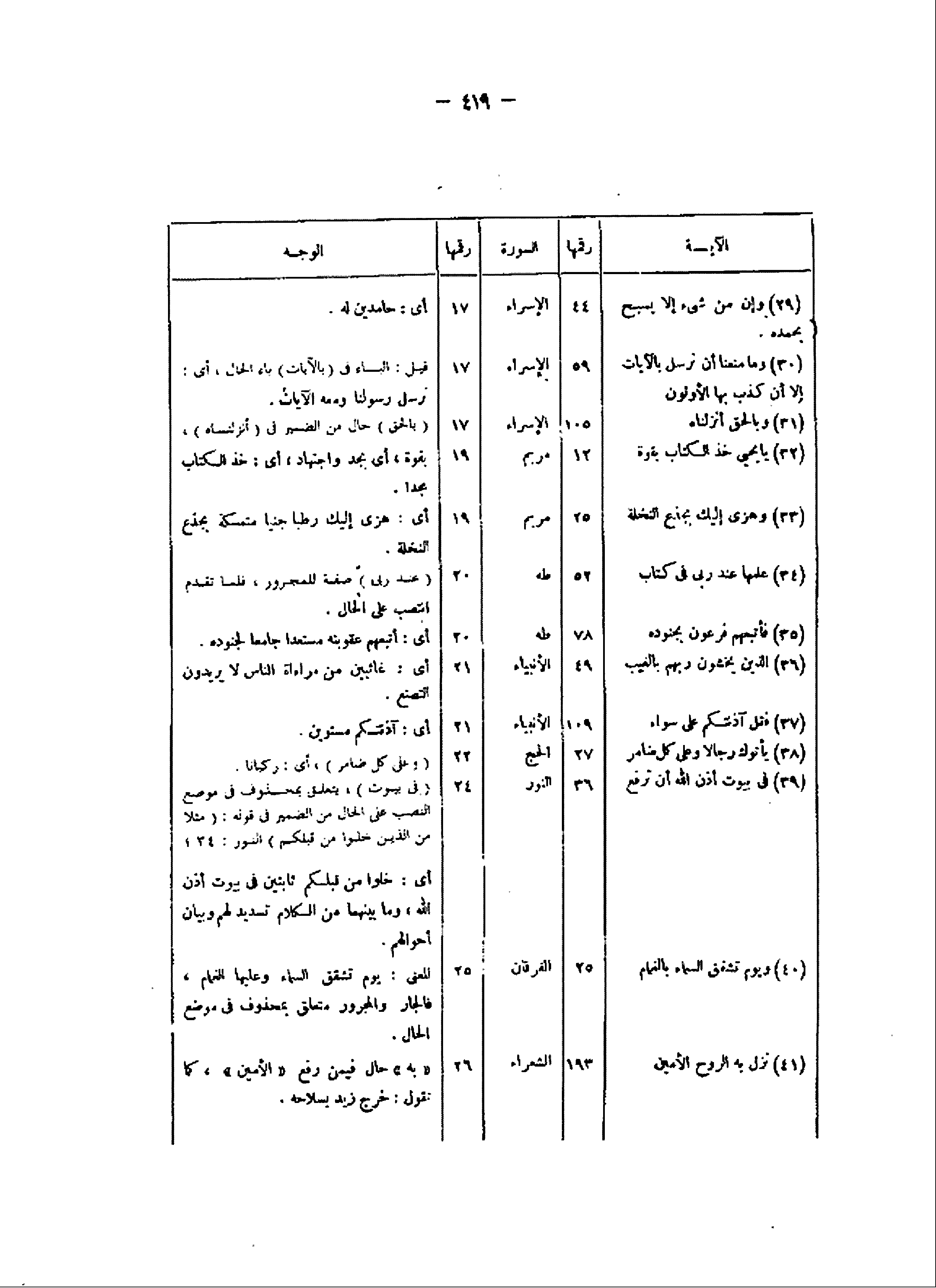 الآية/ رقمها/ السورة/ رقمها/ الوجه (29) وَإِنْ مِنْ شَيْءٍ إِلَّا يُسَبِّحُ بِحَمْدِهِ/ 44/ الإسراء/ 17/ أى: حامدين له.
