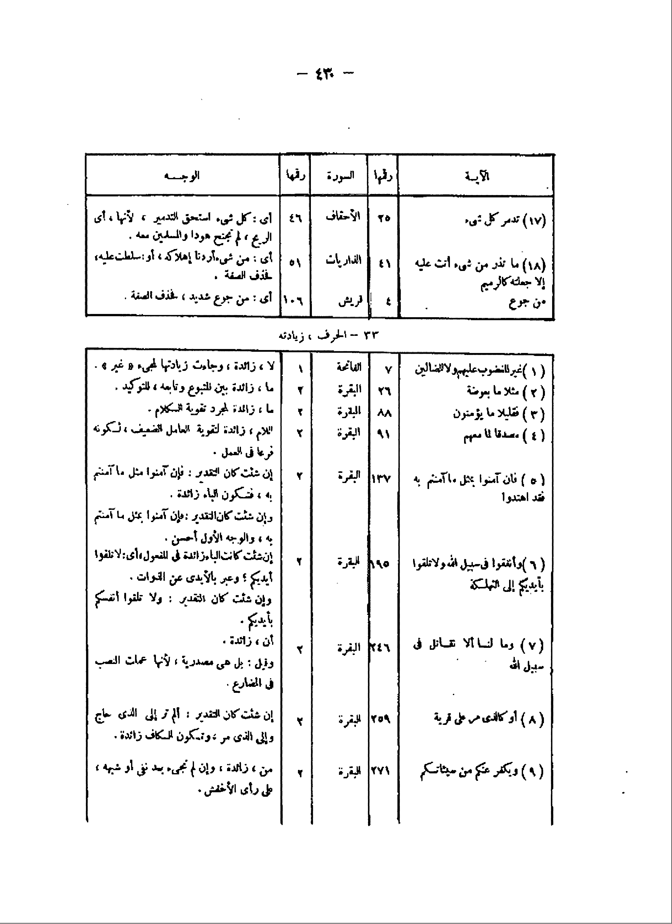 33- الحرف، زيادته (1) غَيْرِ الْمَغْضُوبِ عَلَيْهِمْ وَلَا الضَّالِّينَ/ 7/ الفاتحة/ 1/ لا، زائدة، وجاءت زيادتها لمجىء «غير» .