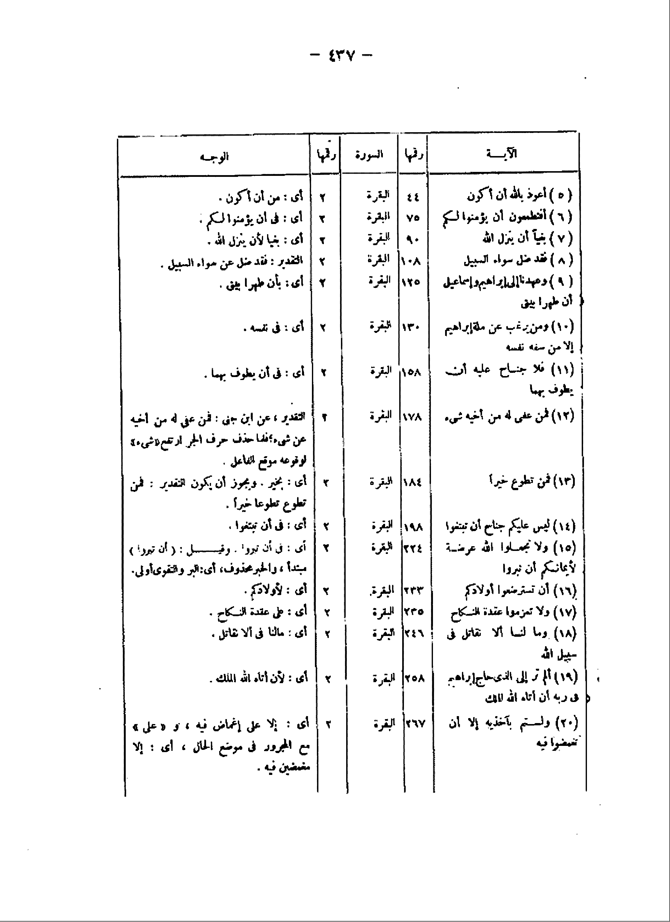الآية/ رقمها/ السورة/ رقمها/ الوجه (5) أَعُوذُ بِاللَّهِ أَنْ أَكُونَ/ 44/ البقرة/ 2/ أى: من أن أكون.