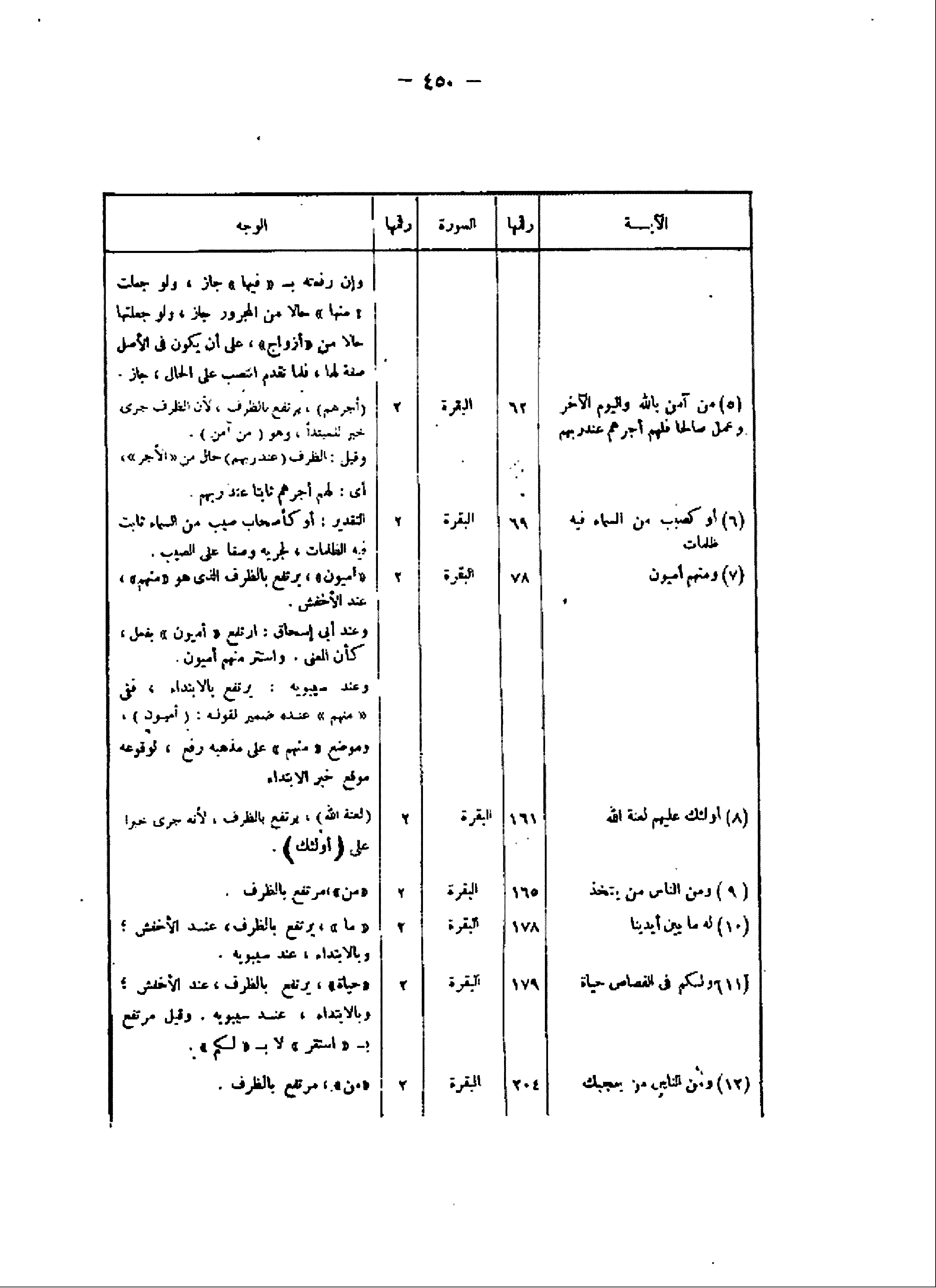 (10) لَهُ ما بَيْنَ أَيْدِينا/ 178/ البقرة/ 2/ «ما» ، يرتفع بالظرف، عند الأخفش وبالابتداء، عند سيبويه.