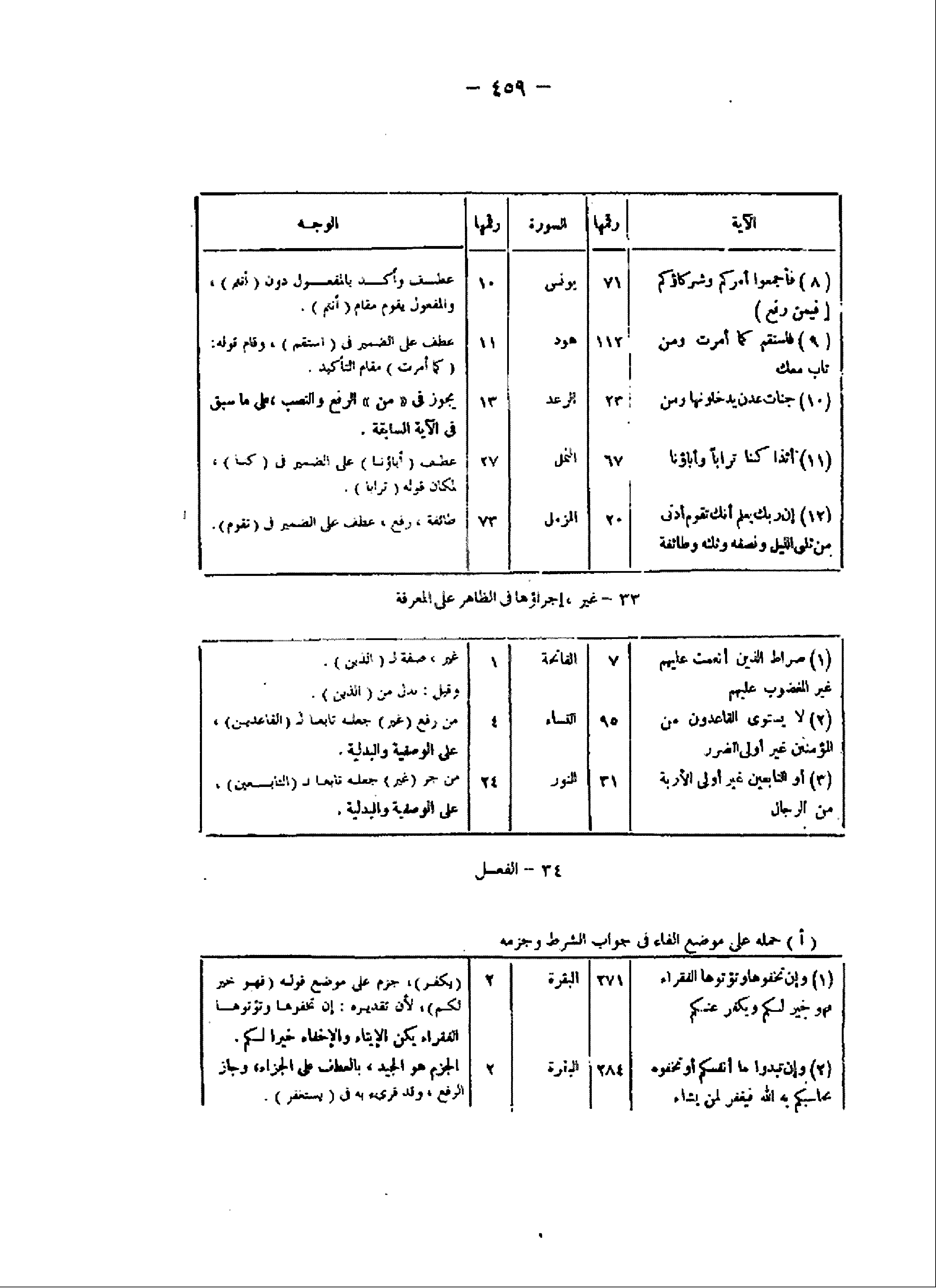 33- غير، إجراؤها فى الظاهر على المعرفة (1) صِراطَ الَّذِينَ أَنْعَمْتَ عَلَيْهِمْ غَيْرِ الْمَغْضُوبِ عَلَيْهِمْ/ 7/ الفاتحة/ 1/ غير، صفة ل (الذين) .