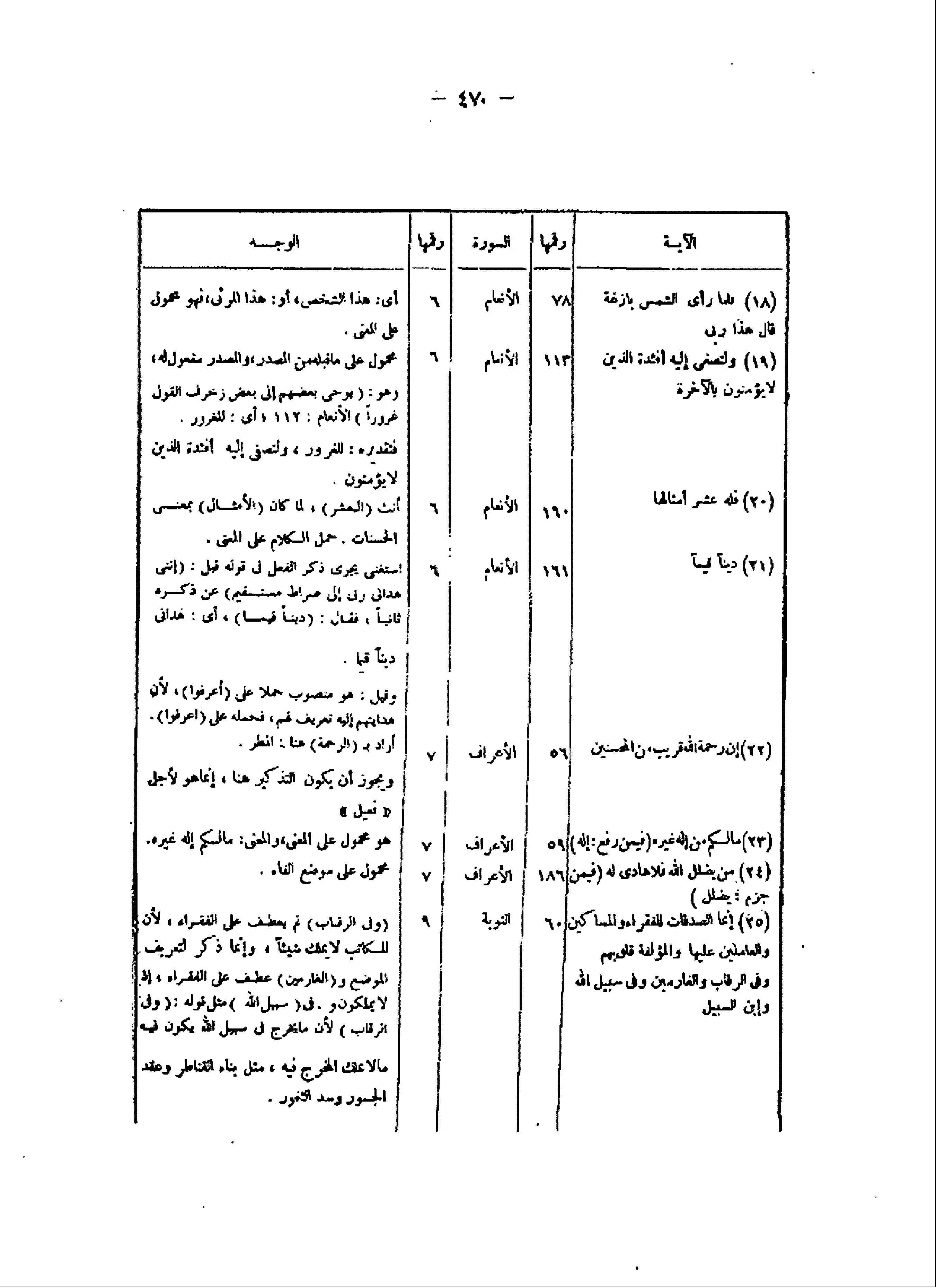 (19) وَلِتَصْغى إِلَيْهِ أَفْئِدَةُ الَّذِينَ لا يُؤْمِنُونَ بِالْآخِرَةِ/ 113/ الأنعام/ 6/ محمول على ما قبله من المصدر، والمصدر مفعول له، وهو: (يوحى بعضهم إلى بعض زخرف القول غرورا) الأنعام: 112 أى: للغرور. فتقديره: للغرور، والتصفى إلهى أفئدة الذين لا يؤمنون.